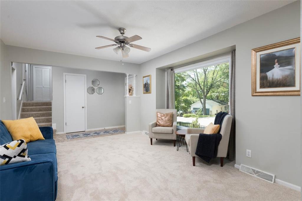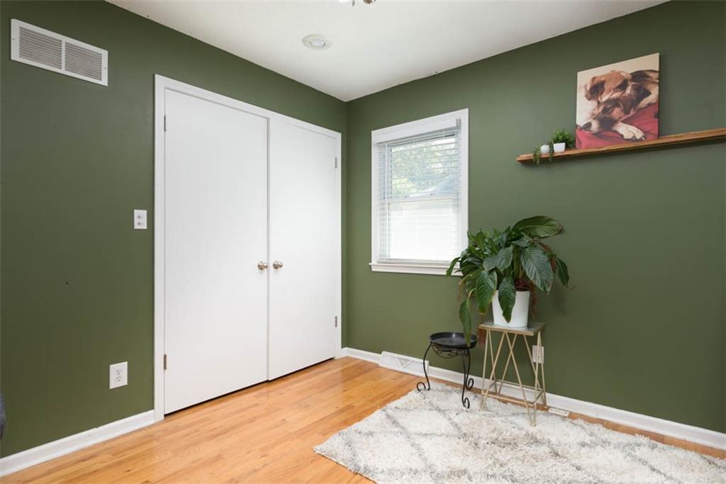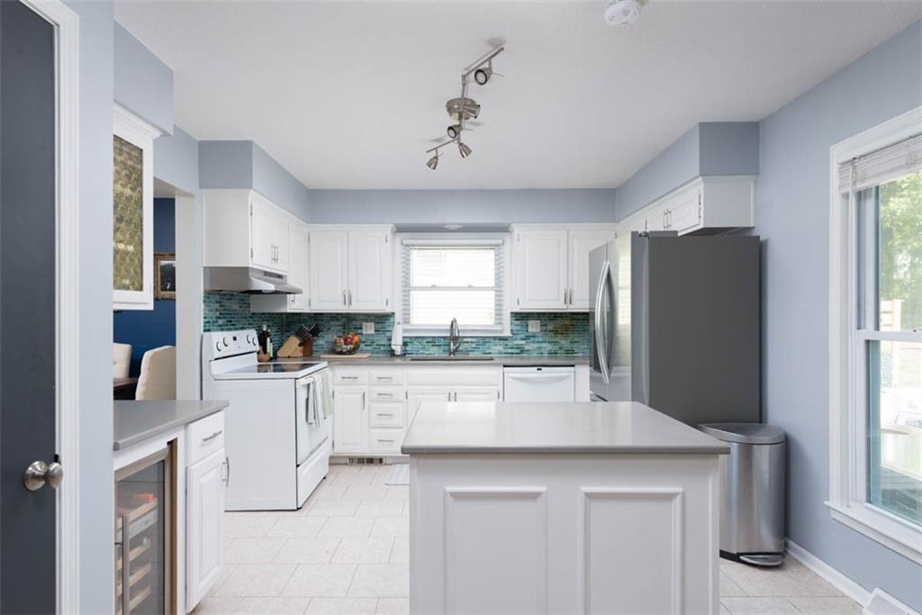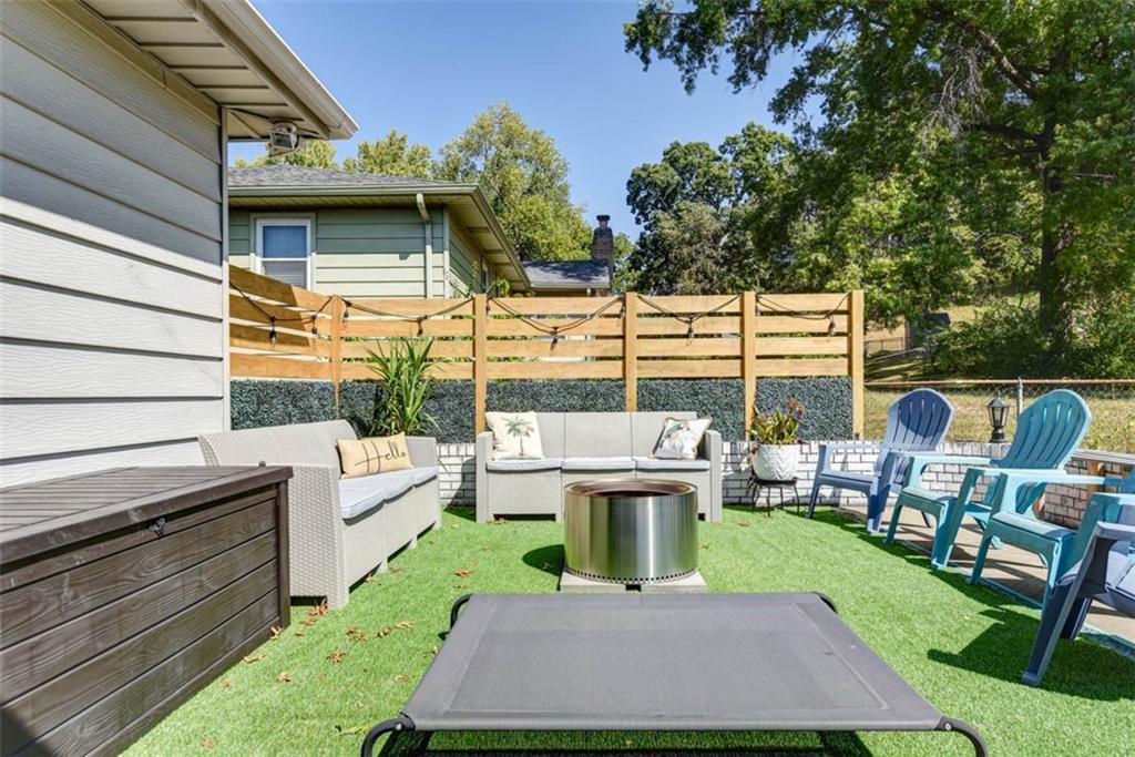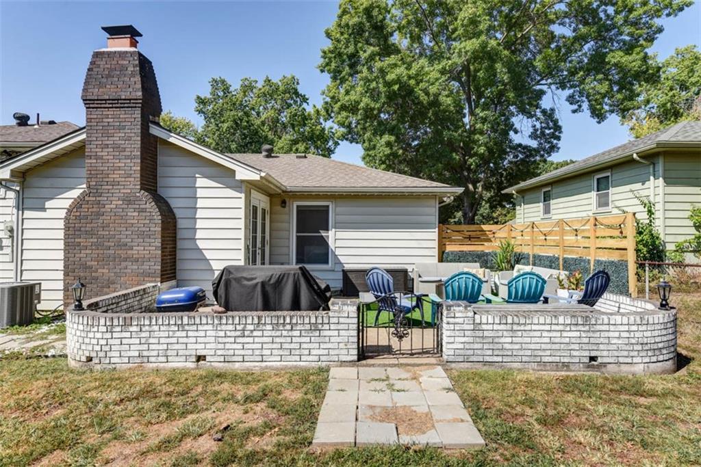 This house has ALL the mid-century modern charm you could want! Warm and welcoming, with a fantastic floor plan, in a nice quiet neighborhood with mature trees. Gorgeous colors throughout, with stylish light fixtures. Formal living room and dining room – a bright open kitchen with quartz counters, roomy pantry, and a tile floor leading to the world’s coziest family room, with soaring ceiling, big brick fireplace, hardwood floors, and double doors out to a great patio and fenced yard! BRAND NEW ROOF and new carpeting here for the new owners! Master bedroom has hardwood floors, a cedar accent wall, ceiling fan, a double closet, and a newly updated en suite bathroom! Second and third bedrooms are both hardwood with ceiling fans and ample closet space. Second full bathroom is also newly updated. Downstairs, plenty of unfinished space for storage. This home is super convenient to everything KC (and nearby NKC!) have to offer, with easy trail access, and has great proximity to lots of shopping and dining, and highly-rated NKC Schools!