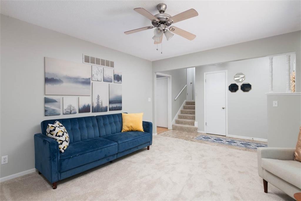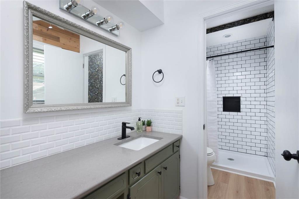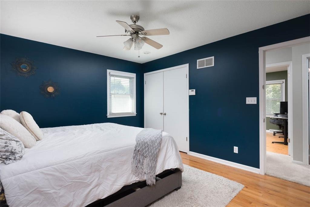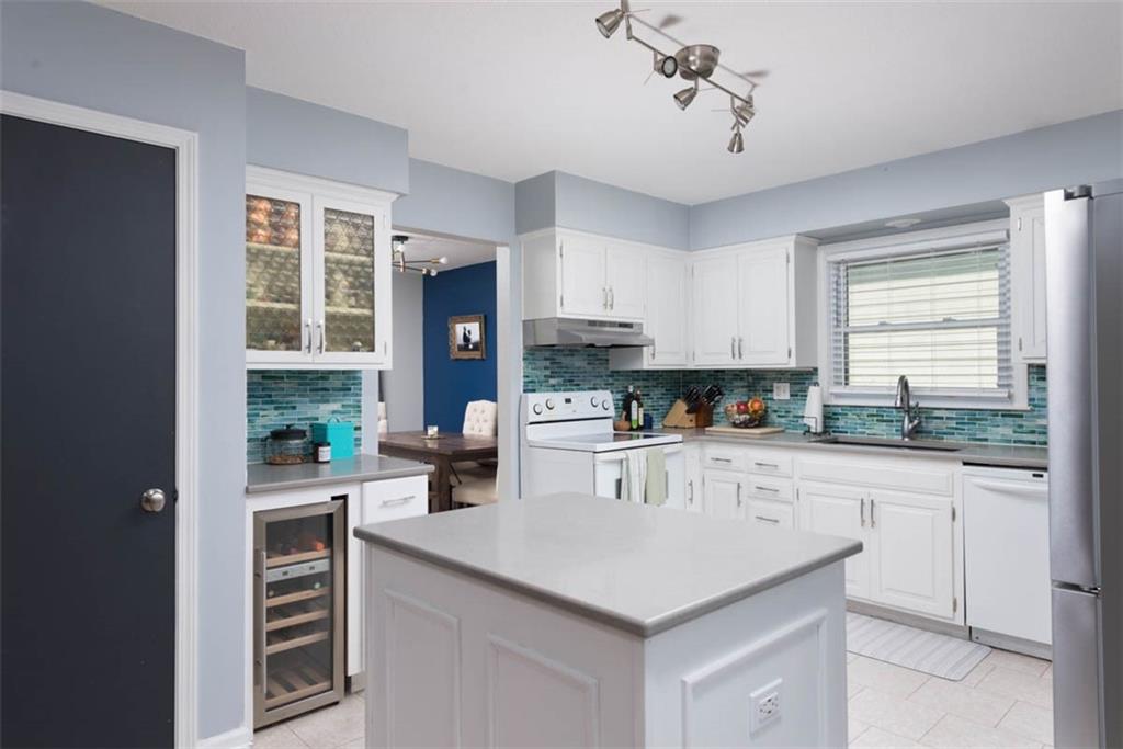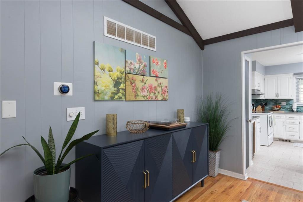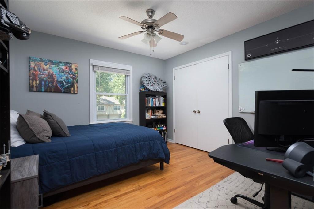 This house has ALL the mid-century modern charm you could want! Warm and welcoming, with a fantastic floor plan, in a nice quiet neighborhood with mature trees. Gorgeous colors throughout, with stylish light fixtures. Formal living room and dining room – a bright open kitchen with quartz counters, roomy pantry, and a tile floor leading to the world’s coziest family room, with soaring ceiling, big brick fireplace, hardwood floors, and double doors out to a great patio and fenced yard! BRAND NEW ROOF and new carpeting here for the new owners! Master bedroom has hardwood floors, a cedar accent wall, ceiling fan, a double closet, and a newly updated en suite bathroom! Second and third bedrooms are both hardwood with ceiling fans and ample closet space. Second full bathroom is also newly updated. Downstairs, plenty of unfinished space for storage. This home is super convenient to everything KC (and nearby NKC!) have to offer, with easy trail access, and has great proximity to lots of shopping and dining, and highly-rated NKC Schools!