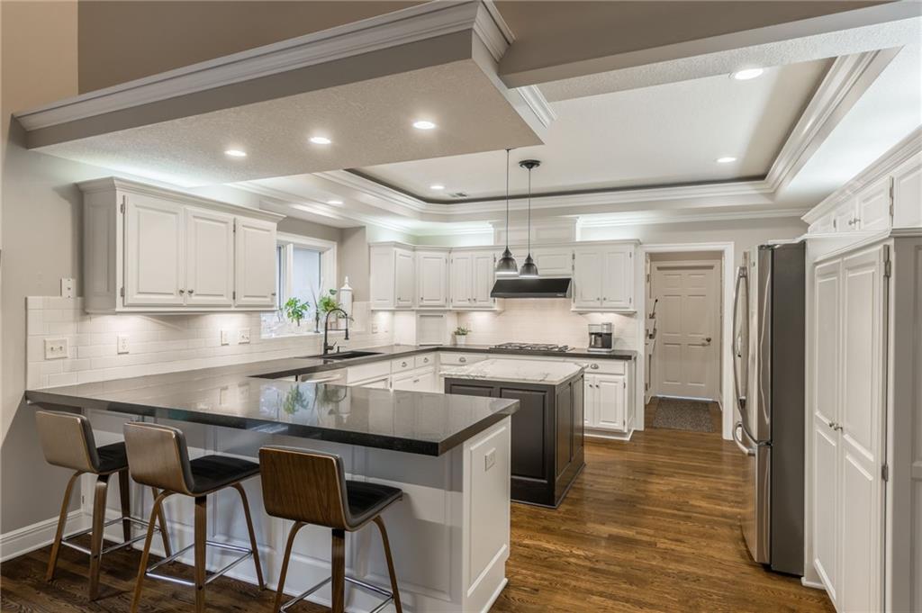 OHH MYY! INCREDIBLY KEPT HOME ON A HEAVILY TREED LOT JUST SHY OF AN ACRE. LOCATED ON A QUIET STREET IN COVETED BRIARCLIFF WEST, THIS AMBERSON BUILT 1.5 STORY HAS EVERYTHING YOU COULD DESIRE. STARTING W/ A DISTINGUISHED FRONT ELEVATION WITH SIDE ENTRY GARAGE. WALK INTO THE ENTRY AND SOARING CEILINGS W/ TALL ARCHED WINDOWS SHOWCASING THE NATURAL SETTING PULL YOU INTO A MAIN FLOOR W/ SOLID HARDWOOD FLOORING WHILE ONCE UPON A TIME CUSTOM TRIM WORK FLOWS THROUGHOUT THIS WELL-APPOINTED HOME. THE KITCHEN/HEARTH AREA IS THE HEART OF THE HOME CREATING THE ULTIMATE PLACE FOR CONNECTION. HAVING EXPANDED SPACE FOR GATHERINGS AND OUTSIDE SPACE W/ A COVERED PORCH ALONG W/HUGE DECK ALLOW FOR ENDLESS ENTERTAINING POSSIBILITIES. THE KITCHEN IS LOADED WITH STAINLESS APPLIANCES, SEVERAL LINEAR FEET OF GRANITE COUNTERTOPS FOR FOOD PREP AND TILE BACKSPLASH. RETREAT TO THE MAIN FLOOR MASTER WITH FIREPLACE, UPDATED MASTER BATH WITH QUARTZ COUNTERTOPS, TASTEFUL TILE IN THE SHOWER AND NICE SIZED CLOSET. ALL THE UPSTAIRS BEDROOMS ARE OVERSIZED WITH BATHROOM ACCESS. THE FINISHED BASEMENT IS LOADED W/ CONCRETE STAINED FLOORING THROUGHOUT, MEDIA AREA, GAME ROOM AND BAR W/ A FULL KITCHEN LENDING ITSELF TO BE “THE” PLACE TO WATCH “THE” GAME! GREAT FEATURES OF THE BASEMENT ALSO INCLUDE A WORKOUT SPACE, AN OFFICE, A BEDROOM AND BATH ALONG WITH A NICE WALKOUT TO A PARTIALLY COVERED DECK EXPANDING THE LIVING SPACE ANOTHER COUPLE OF HUNDRED SQUARE FEET TAKING ADVANTAGE OF THE NATURE ASPECT THIS HOME IS GRACED WITH. BRIARCLIFF WEST OFFERS A SWIMMING POOL, TENNIS COURTS AND WALKING PATHS W/ SUPER WALKABILITY TO TOP NOTCH SPA, SHOPS, DINING AND COFFEE SHOP. LOCATED AT THE NECK OF THE NORTHLAND YOU GET ALL THE BENEFITS OF SUBURBAN SETTING AND STILL ARE ONLY 10 MINUTES FROM DOWNTOWN, PARKS AND THE AIRPORT – IT IS THE BEST LOCATION FOR ACCESS TO OUR WONDERFUL CITY. SUPER GREAT OPPORTUNITY FOR THOSE WANTING QUALITY, CONVENIENCE AND STATURE IN A HOME!