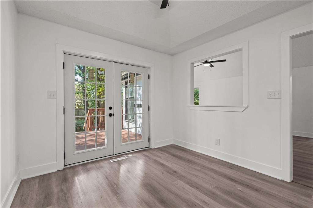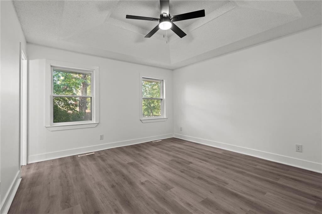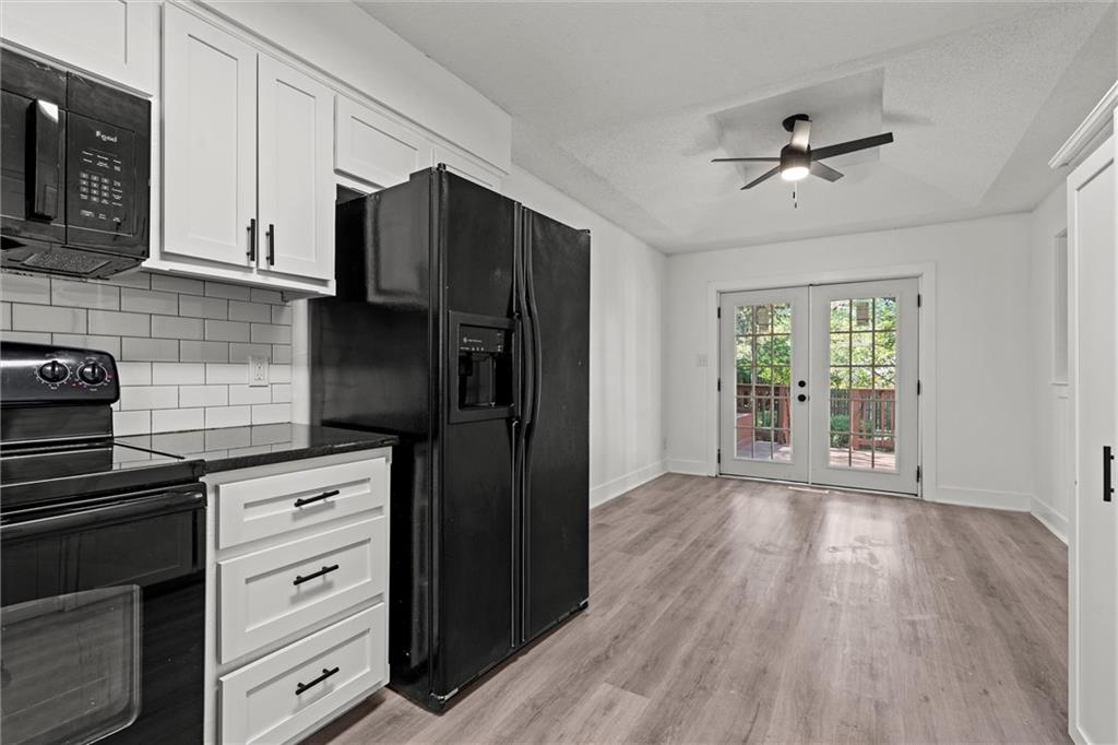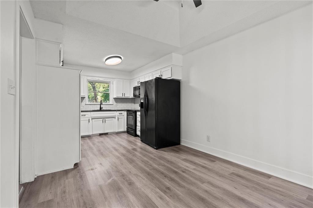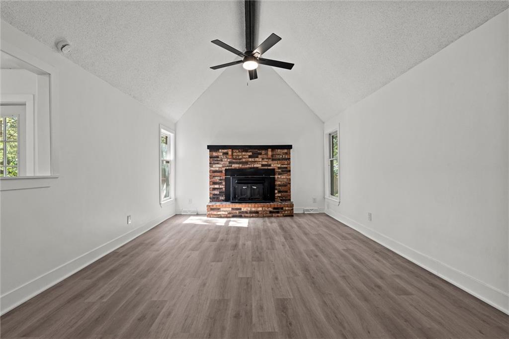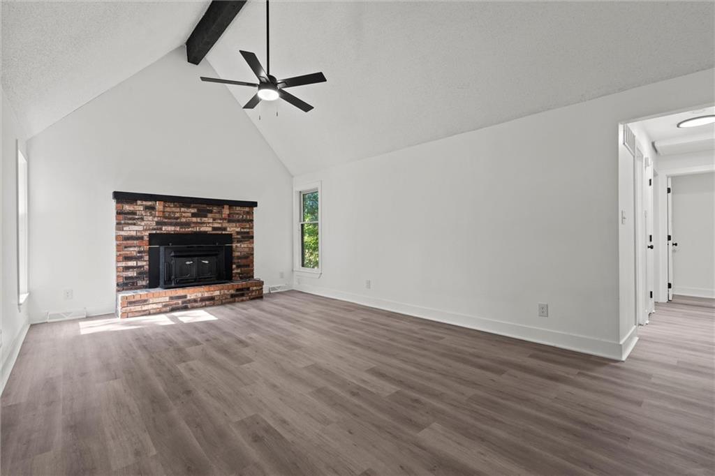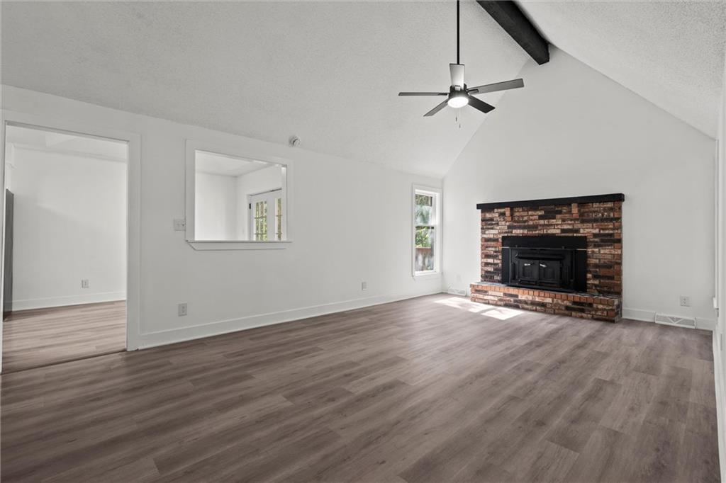 The kitchen features brand-new cabinets, sleek countertops, and appliances, while both bathrooms have been beautifully redesigned with timeless finishes. The living room centers around a stone fireplace that adds warmth and character.