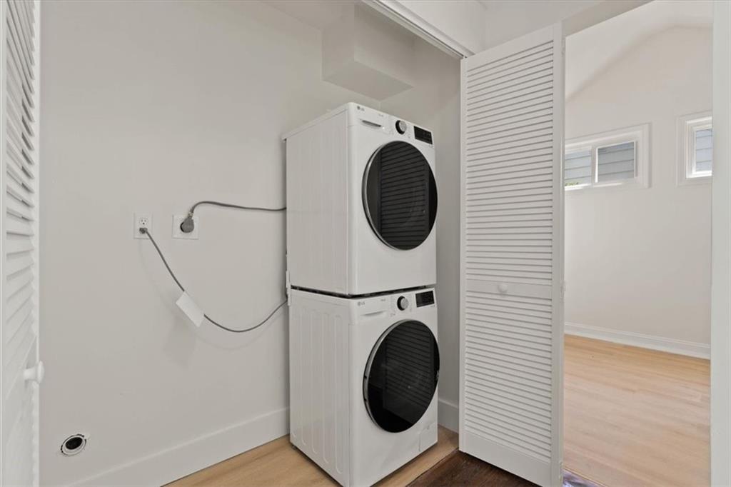 Three main-level bedrooms provide cozy retreats, while the full bath showcases bold tilework and contemporary fixtures. A main-level laundry closet with a new LG washer and dryer adds convenience and efficiency to your daily routine.