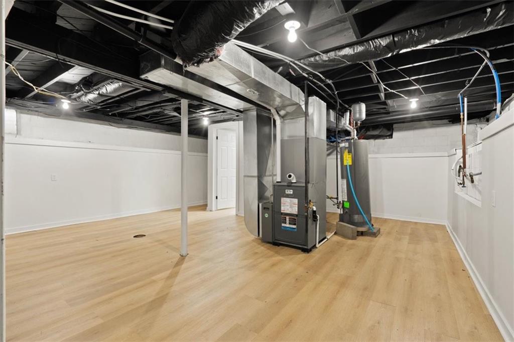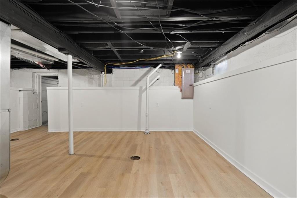 The finished lower level offers additional flexible space with new flooring and an added half bath — ideal for a second living area, home office, or playroom.