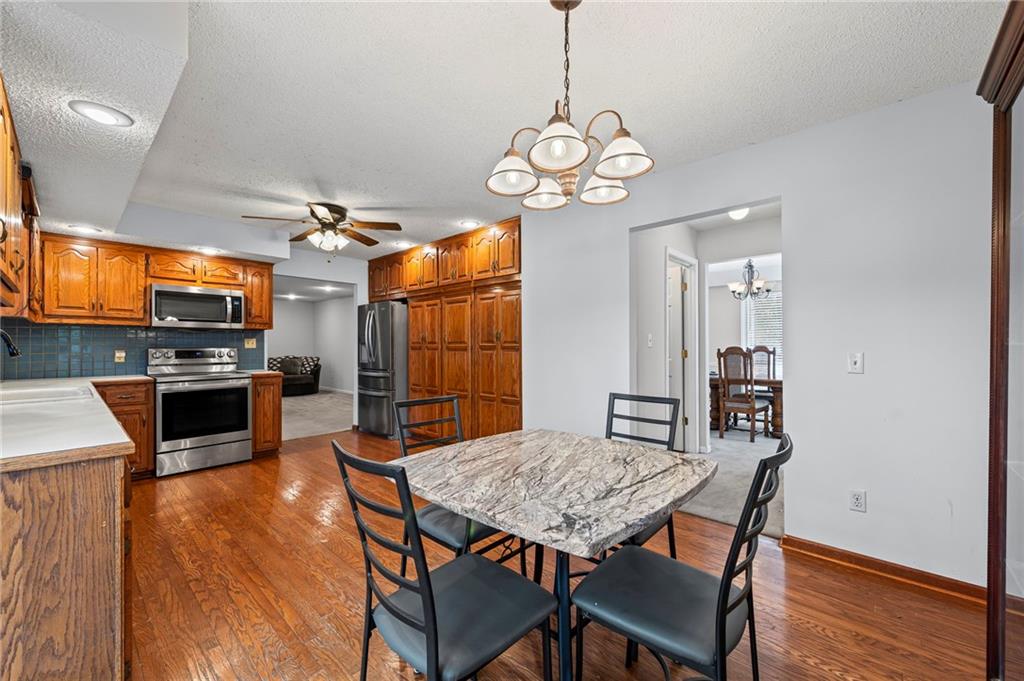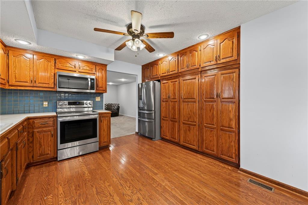 Spacious, functional, and perfectly located. This home has room for everyone and everything. The kitchen features an eat-in area, a built-in pantry with plenty of storage, and a formal dining room for gatherings. Upstairs, you’ll find all four bedrooms, including the primary suite with a separate tub and shower, a walk-in closet, and a bonus room tucked behind it, ideal for a home office, workout space, nursery, or extra dressing area. The lower level offers even more flexibility with a nonconforming 5th bedroom, full bath, and generous entertaining space that opens to a two-tiered deck and fenced yard, great for kids, pets, or hosting weekend cookouts. Conveniently located near 169 and 152 highways, you’ll have quick access to shopping, dining, and everything the KC metro has to offer.
