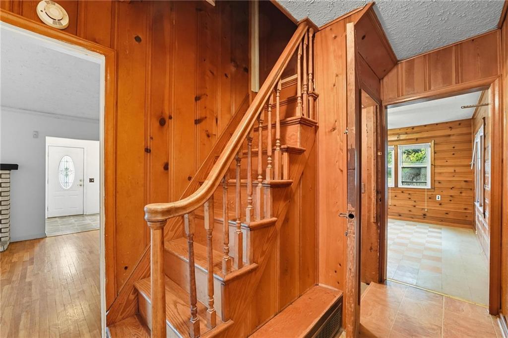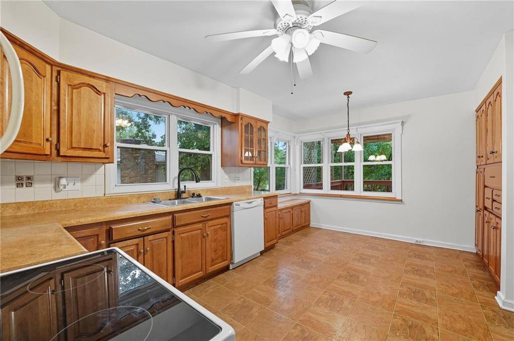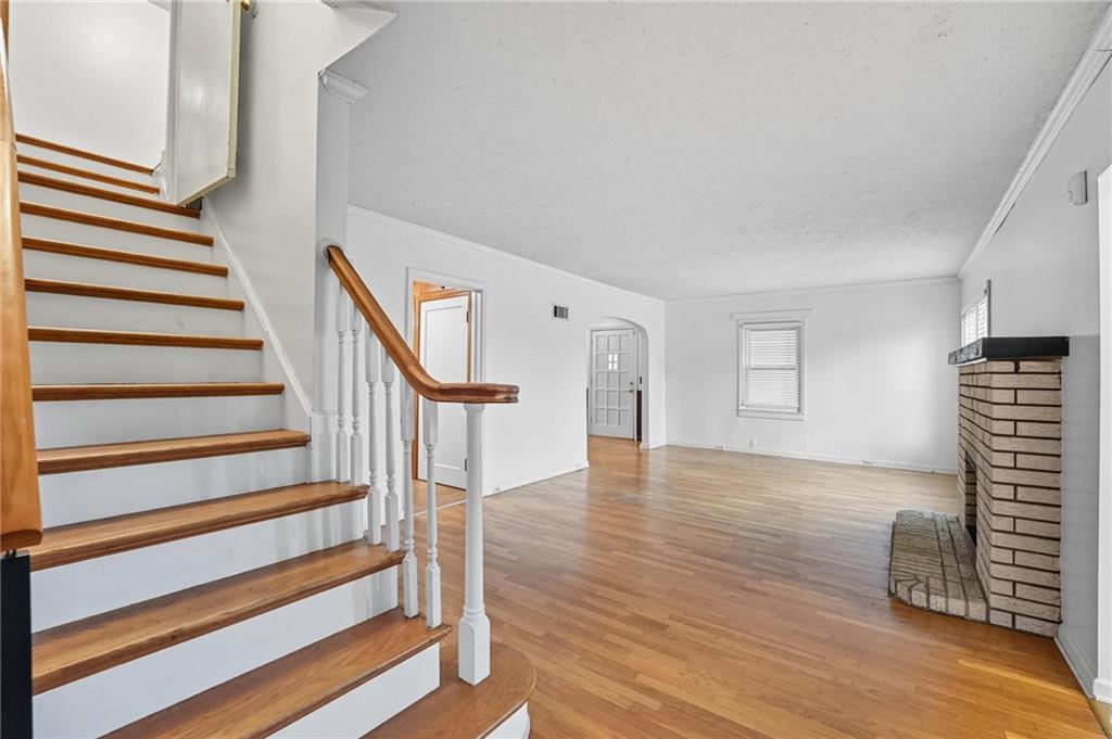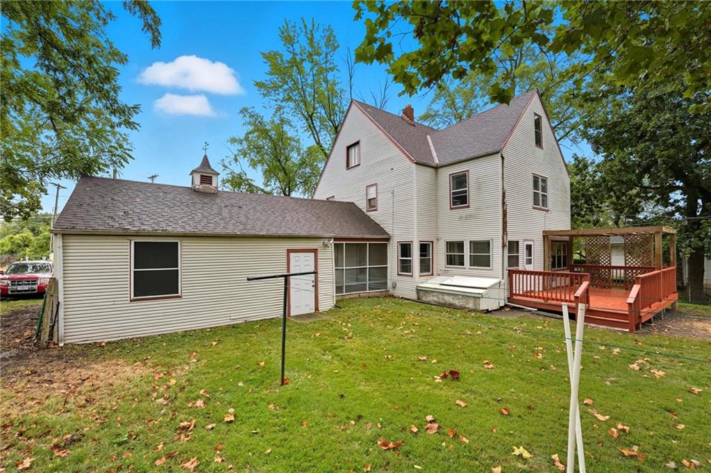 Outside, enjoy a deck overlooking the fenced backyard, a two-car garage connected via the porch. Additional highlights include newer windows, wood-burning fireplaces in the living room and basement, and a walk-out basement with sump pump. Conveniently located off Brighton Avenue, this home combines historic character with generous space and potential.