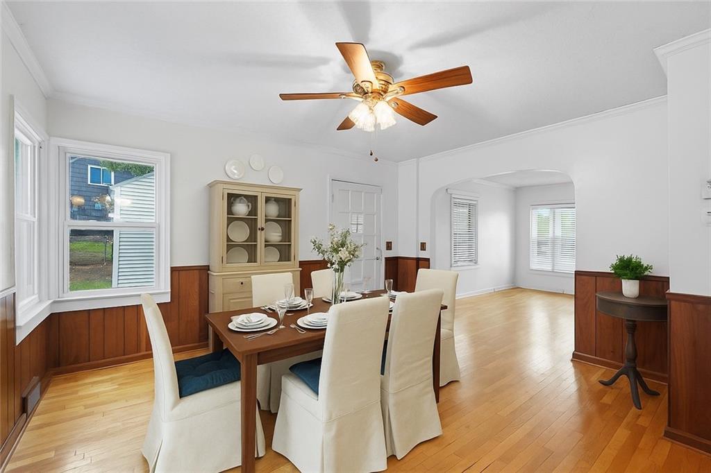 Step into this charming 1.5-story home offering 4 spacious bedrooms and 3 full bathrooms with over 2,300 square feet of living space. The main level features hardwood floors in the living and dining rooms, a full bath, and a flexible main-floor bedroom. The kitchen includes built-ins, a cozy bench, and access to an insulated porch, perfect for relaxing year-round. Upstairs, you’ll find three oversized bedrooms, including a large primary suite with its own ensuite bath and gas fireplace.