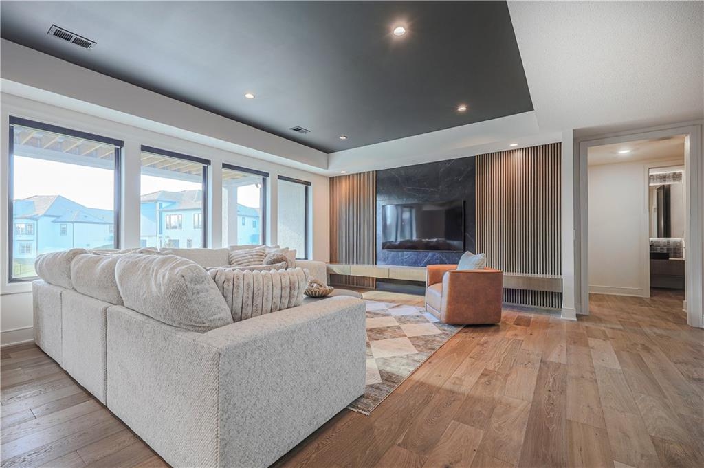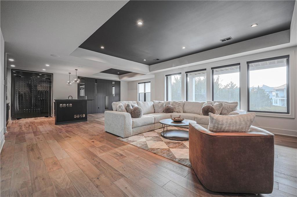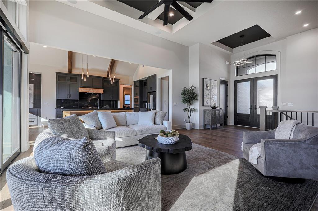 From the moment you arrive, this Casa Bella former model home feels less like a house & more like a private retreat. Set on a wooded lot in The Preserve at Forest Ridge Estates, the Northland’s premier luxury community, you’re perfectly positioned just minutes from Parkville & downtown Kansas City, w/effortless access to MCI airport for quick getaways & seamless business travel. Urban convenience meets serene seclusion in the best possible way. Inside, soaring ceilings in the gathering room draw your eye up, while a wall of windows pulls your gaze out toward the trees & the screened-in covered patio, creating a true indoor/outdoor living experience. The heart of the home is a chef-inspired kitchen that quietly extends into a hidden Caterer’s Kitchen tucked inside a spacious pantry, ideal for hosting holidays, catered events, or intimate dinners where everything feels beautifully orchestrated, & nothing feels cluttered. The owner’s suite is designed as a sanctuary, w/a spa-like bath & a sunlit, generous walk-in closet. An additional main-level bedroom offers versatility as a refined guest suite or an elegant home office, giving you flexible space that adapts to the way you live. On the lower level, the home transforms into an entertainer’s playground. A striking wet bar features a one-of-a-kind wine feature wall & a dedicated wine & beverage refrigerator, opening into an expansive rec room w/a custom entertainment wall perfect for game days, movie nights, or hosting friends. Two spacious bedrooms on this level ensure everyone has their own comfortable, private retreat. A fully suspended (excavated) garage offers exceptional storage or future finish possibilities, whether you imagine a fitness studio, golf simulator, or theatre room. The canvas is yours. With its modern design, curated finishes, & unbeatable location near Parkville, downtown Kansas City, and MCI airport, this residence is more than a home; it is a lifestyle, waiting for its next chapter.