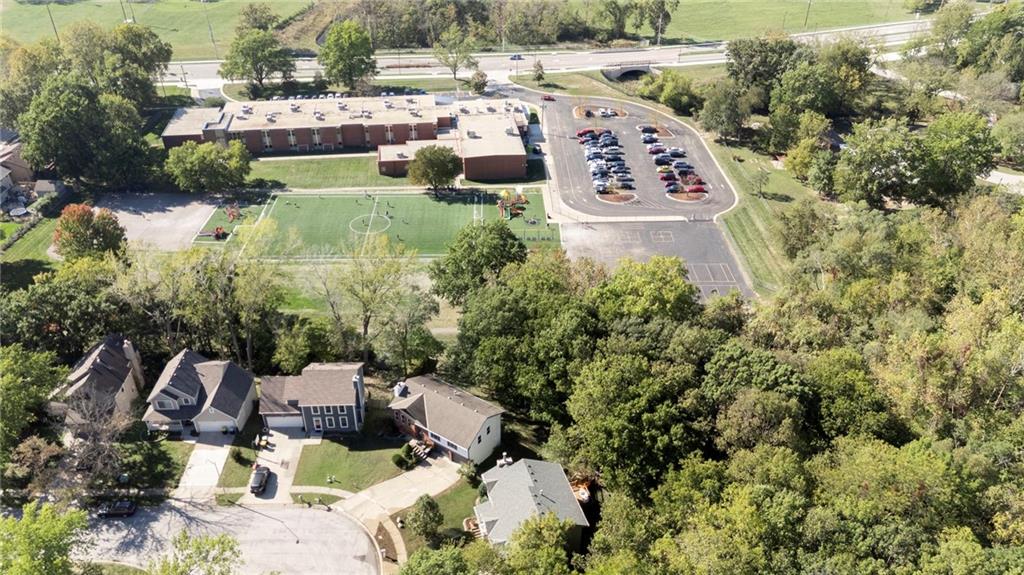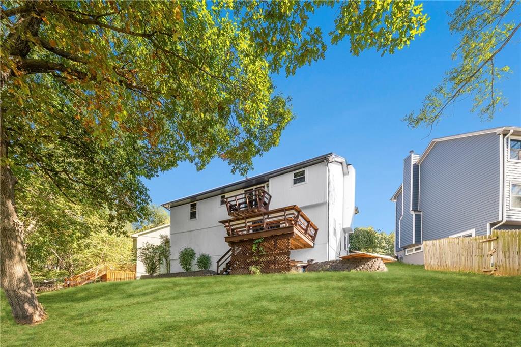 Spacious split entry home with vaulted ceiling in living room, ceiling fan and fireplace. Kitchen with lots of cabinet space with a walkout to the deck surrounded by mature trees. Primary room with private bath. Two additional bedrooms with hallway full bath are located on the main level. Finished lower level includes a family room and a second deck and a office or possible 4th bedroom.2 car garage is extra deep with storage shelves and workshop area. This home is minutes from major highways, KCI and Downtown.