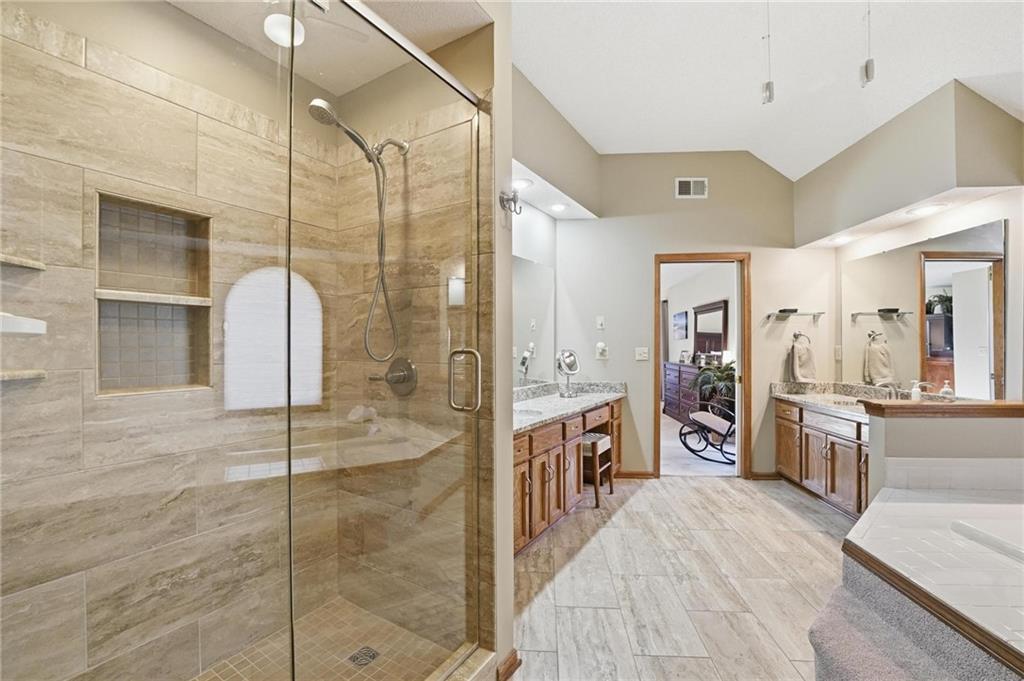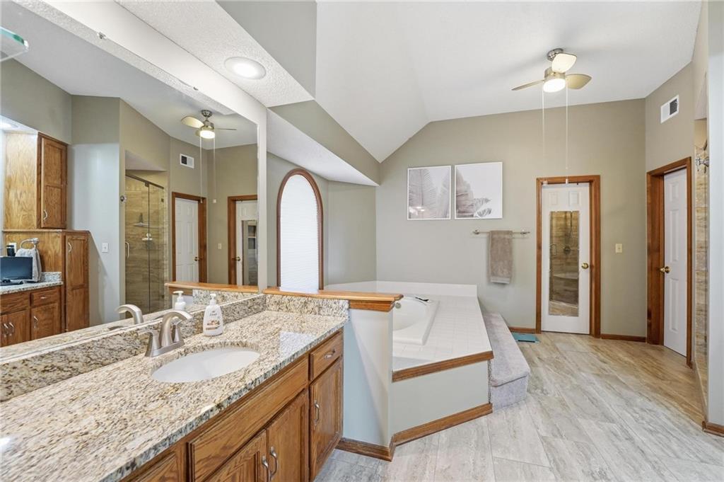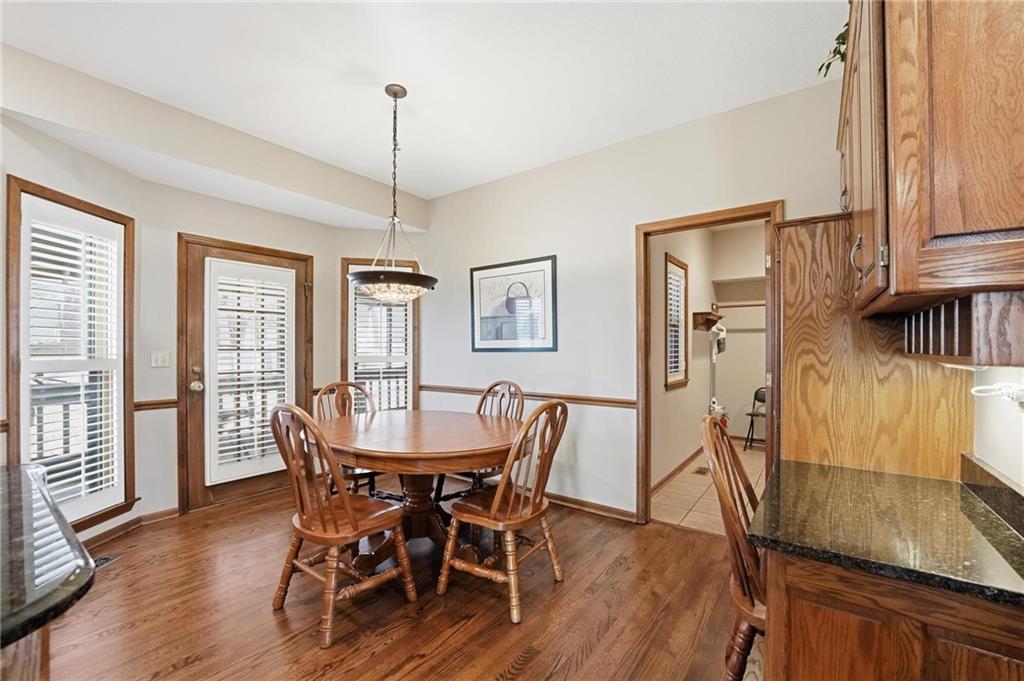 This one of a kind floor plan in Platte Brooke North delivers the kind of space, style and comfort that stands out the moment you walk in. Tall ceilings and wood floors stretch across the main level, setting a warm and elevated tone throughout the living, dining and office spaces. The kitchen brings the function everyone wants with granite counters, a large island, walk in pantry and an easy flow into the living area for everyday living or entertaining. The primary suite is oversized and inviting with updated tile, granite counters and a great walk in closet. Secondary bedrooms offer generous layouts with shared and private bath access. A good size main floor laundry keeps life simple. The walk out lower level adds even more room to spread out with a wide open rec area, wet bar and space for movie nights, game days or guests. The fenced yard is huge and ready for pets, play or future outdoor plans. The neighborhood sits close to the Line Creek Trail, giving you quick access to miles of walking and biking. All of this in the Park Hill School District with a floor plan you will not find anywhere else in the neighborhood.