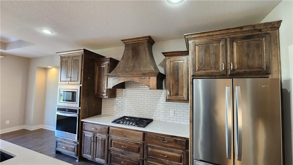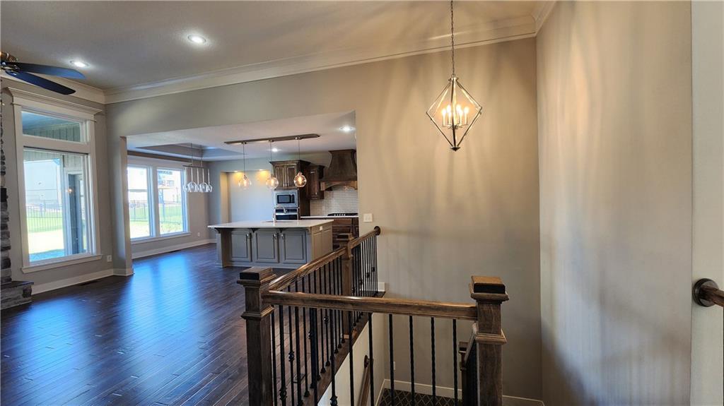 This is the Franklin Plan. You are going to love this warm and inviting home with the open floor plan and high ceilings on the main level of this beautiful 4 bedroom home! The location of this house is absolutely perfect. You will be close to the airport and Zona Rosa, and close to major highways. This like new home includes 2 bedrooms on the main level, and 2 bedrooms in the basement, each with walk in closets and egress windows. Also in the basement is a large great room with a wet-bar complete with a refrigerator and ample cabinets. The gourmet kitchen includes stainless appliances with a built in oven and microwave, along with a 6 burner gas cooktop. The fenced back yard includes a covered patio right off the dining area. As you enter the kitchen from the garage, there is a good size pantry. The laundry is located right off the primary bedroom. Seller had the AC recently replaced. Washer/Dryer and large stainless refrigerator all stay. Seller is providing a one year Cinch Home Warranty for your protection.