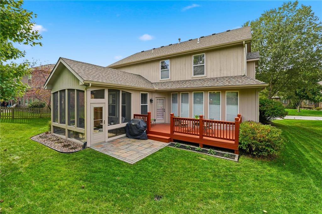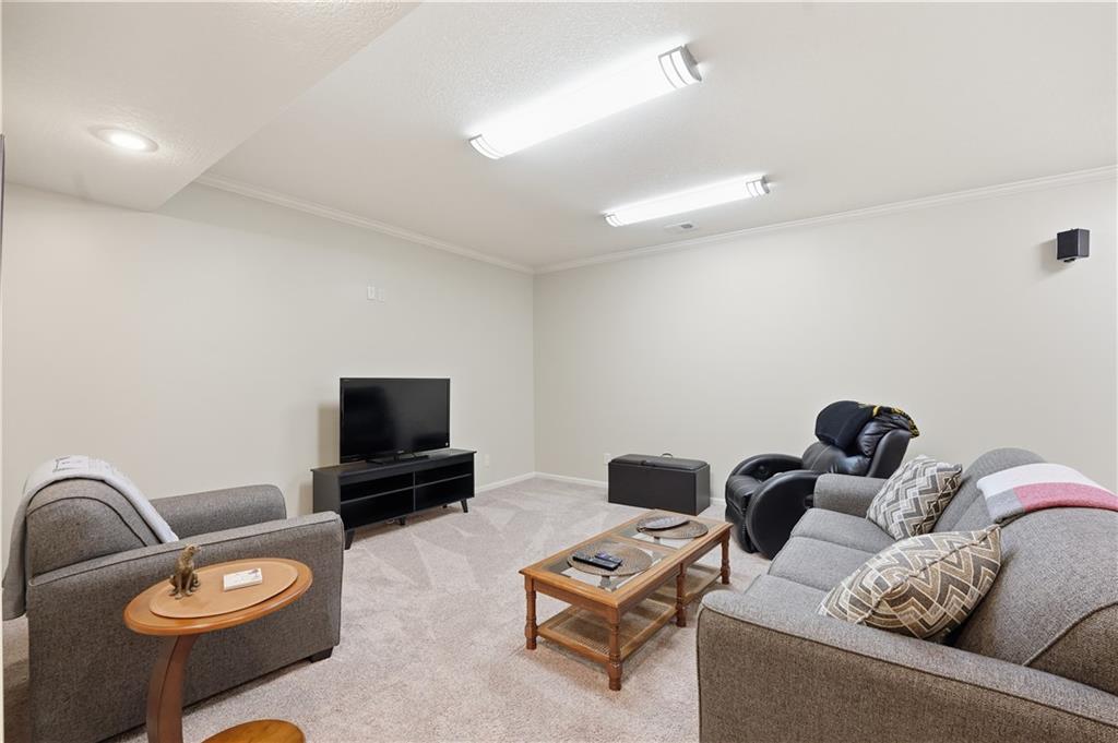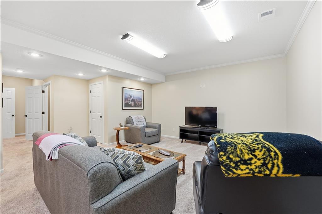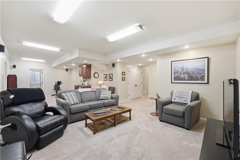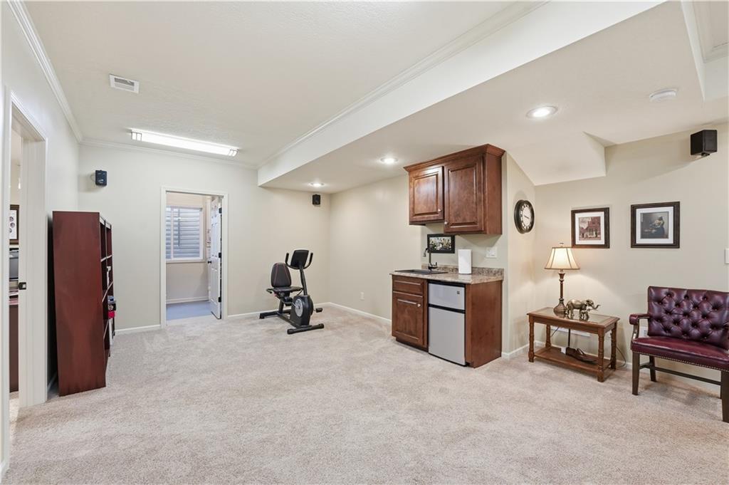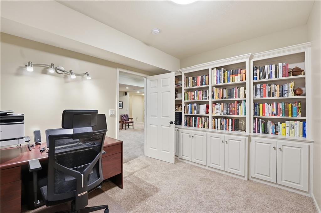 The finished lower level adds additional living space and includes a wet bar for entertaining, an office or bonus room with built-in bookshelves and cabinets, and two generous storage areas. Surround sound speakers in the finished lower level will remain with the home. Perfect for movie nights!