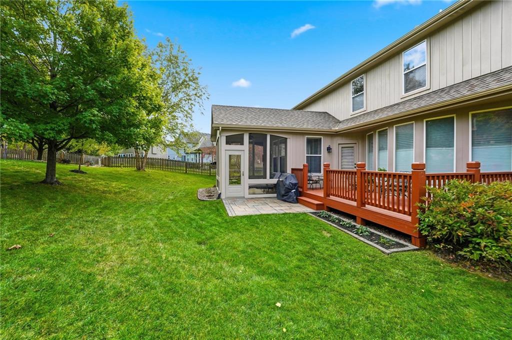 Outdoor features include a spacious deck overlooking a well-maintained yard, an in-ground sprinkler system, and motion-activated security lighting. Recent updates include a new roof (2021), new dishwasher, and radon mitigation system installed in May 2025.