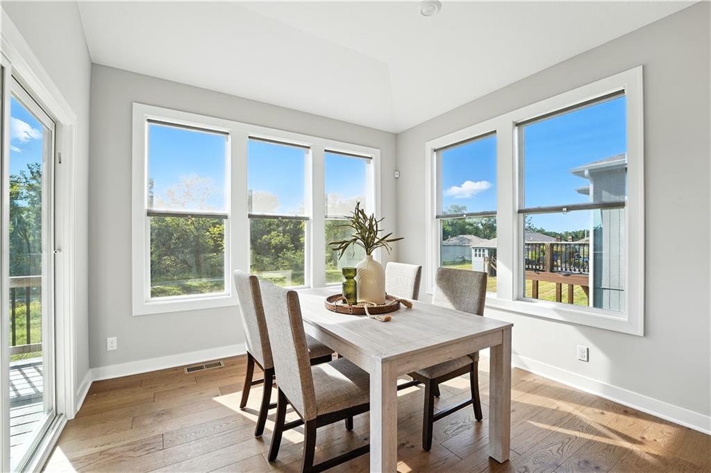 READT FOR OCCUPANCY ! This three-year-old villa will make your heart SING! Picture yourself sipping coffee with serene wooded views and a trail for your daily adventures. Thanks to the HOA’s lawn and snow duties, your weekends are all about relaxation. The Somerset Floor Plan is a chef’s dream, featuring a sprawling kitchen, white cabinets, a gas range, and a pantry so large that it might have its own zip code! The main level features two cozy bedrooms, a laundry area, and a dreamy covered deck, perfect for taking in the sunset. Wake up in the primary suite to Mother Nature’s finest artwork. Downstairs, the walkout basement flaunts a second family hangout, two extra bedrooms, a hall bath, and more storage than you can shake a stick at. Just a hop, skip, and a jump from KCI and downtown, this is a home you simply can’t miss!