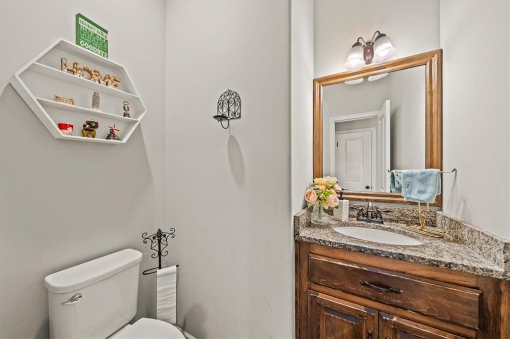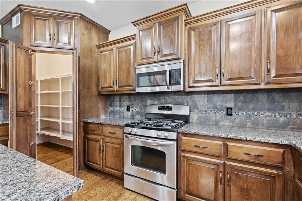 Featuring a main level luxurious master suite, a generous walk-in closet, double vanities, a Jacuzzi tub, and a shower for the ultimate retreat. A gourmet kitchen with granite countertops, stainless steel appliances, a walk-in pantry, and gleaming hardwood floors. The open-concept design flows seamlessly into the dining and living areas, creating a warm and welcoming space perfect for family gatherings. A formal living room provides additional space for entertaining or quiet gatherings. The convenience of a main level laundry room adds everyday functionality to this elegant layout.