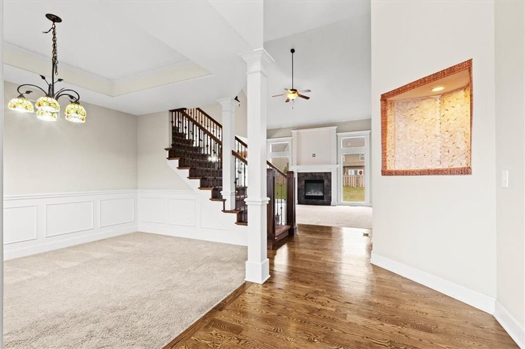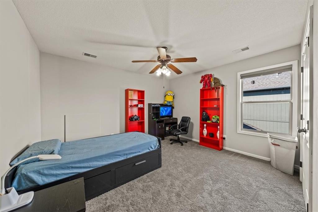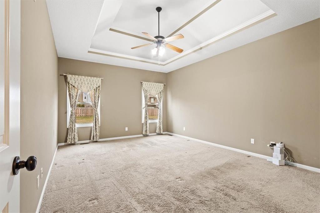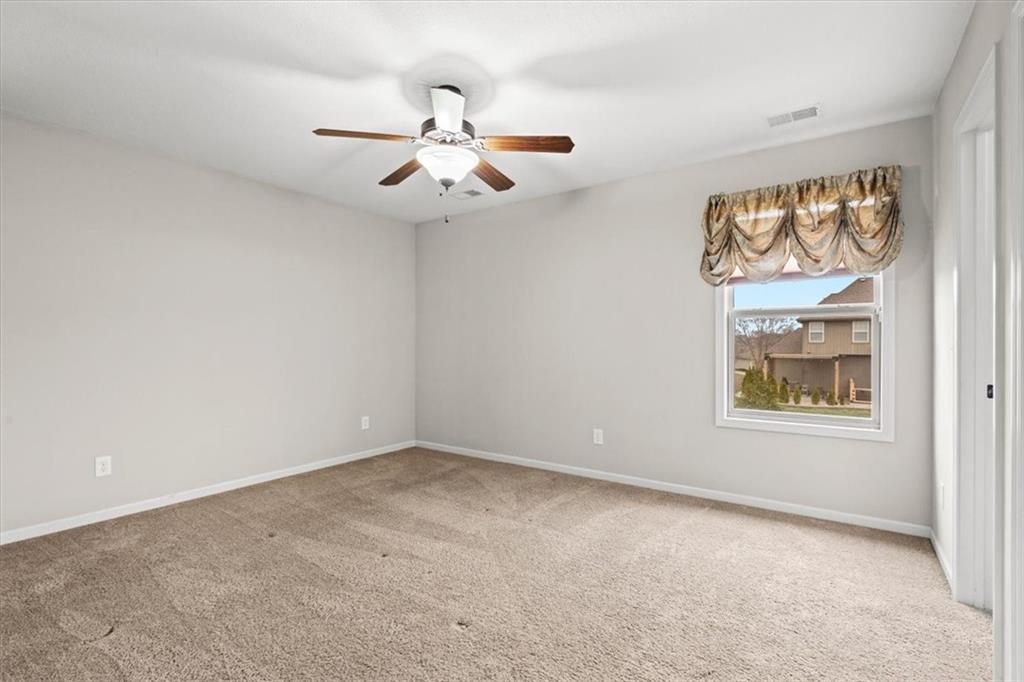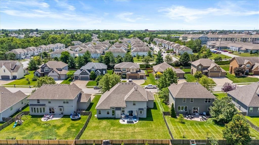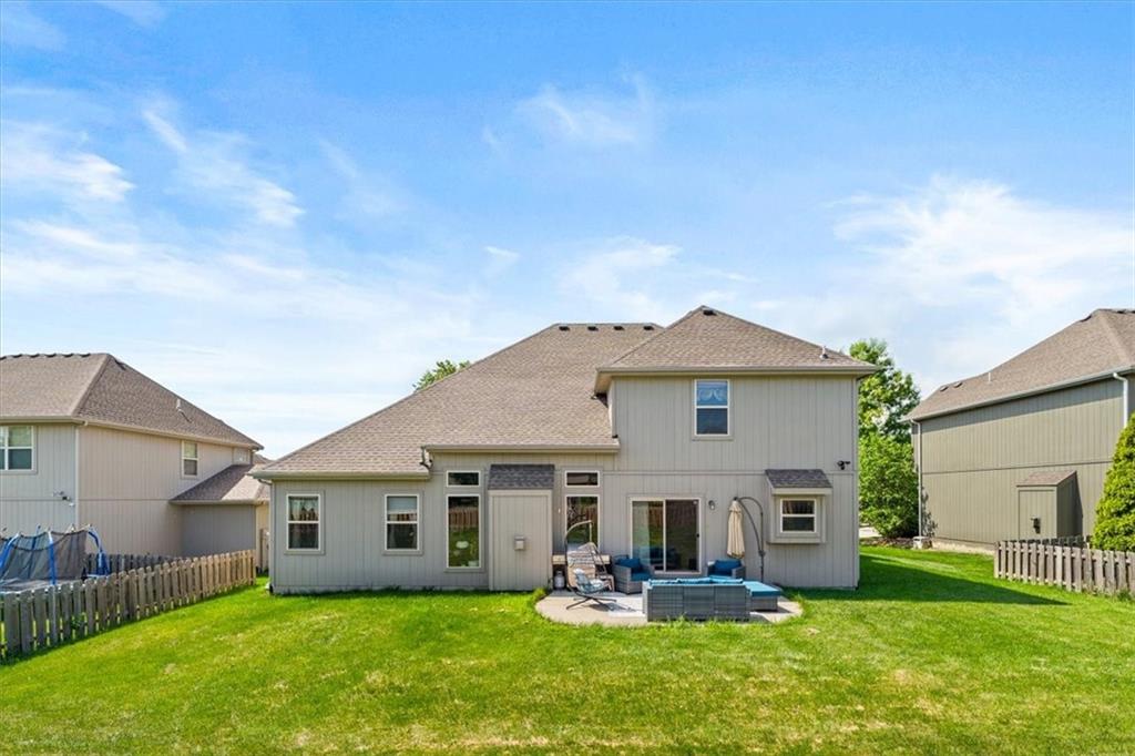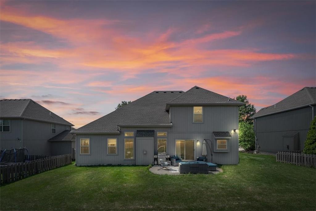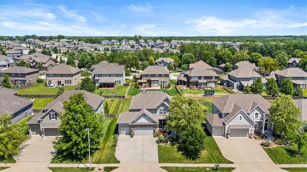 Outside, enjoy a private patio and a level backyard with an in-ground sprinkler system, perfect for relaxing or entertaining. Residents of this vibrant community also have access to walking trails and a neighborhood pool. Located just minutes from Zona Rosa’s shopping and dining options and only minutes from the new Kansas City International Airport, this home offers unmatched convenience and lifestyle.