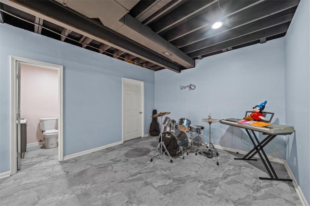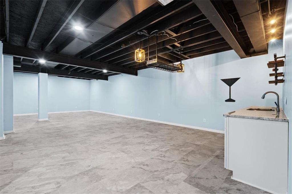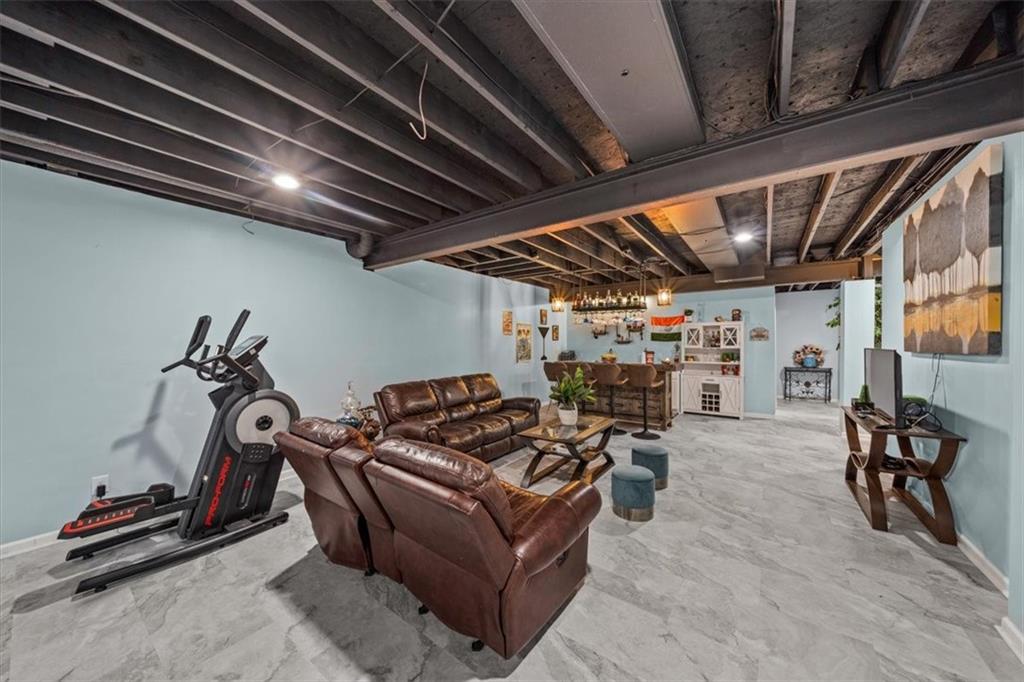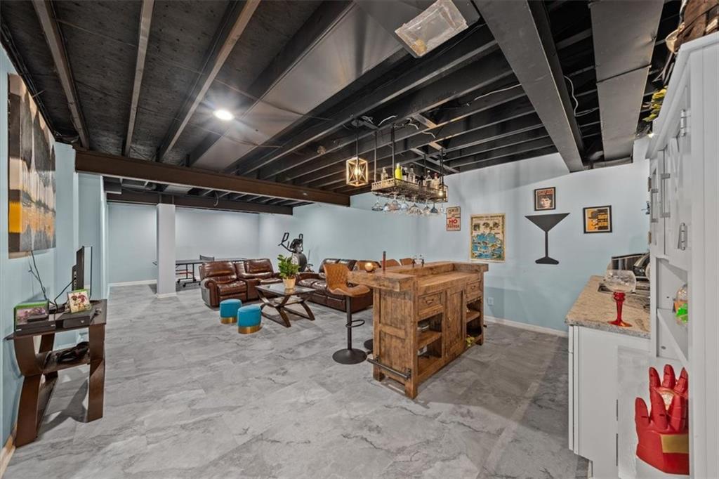 The fully finished lower level expands your living space with a large family room, a wet bar equipped with a dishwasher and a place to hold a refrigerator, a bedroom, and an additional full bathroom ideal for guests or multigenerational living.