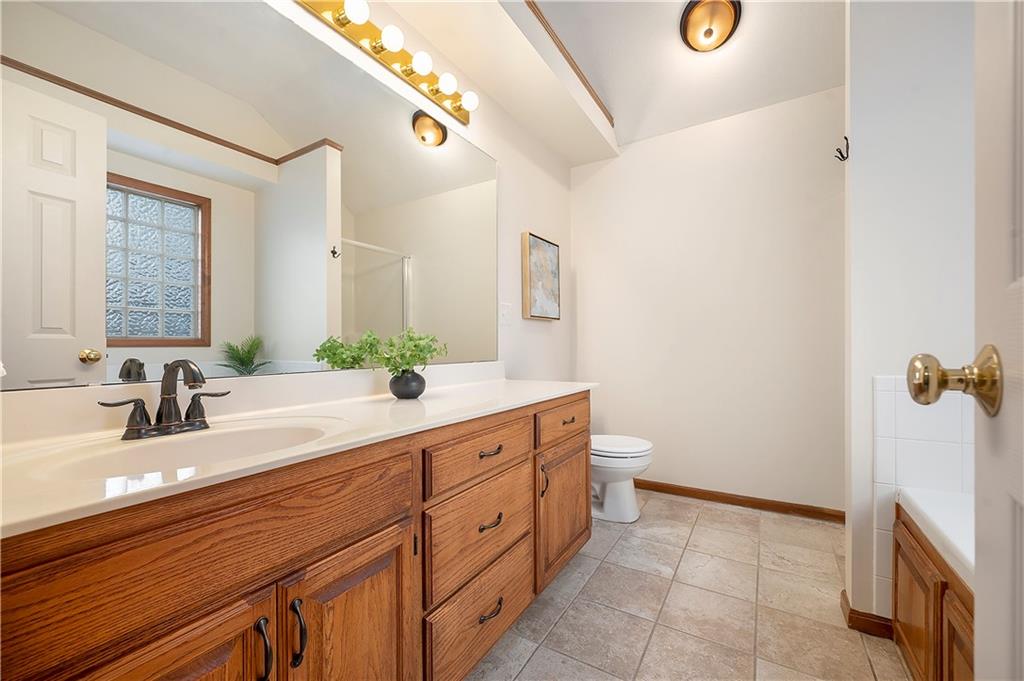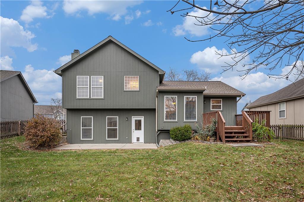 As you step inside, you’ll immediately notice the open, airy ambiance created by vaulted ceilings and a semi-open floor plan. The bright and cozy living room flows seamlessly into a large kitchen featuring hardwood floors, a walk-in pantry, and a cheerful eat-in area—ideal for daily meals and gatherings. Just a few steps down, discover an expansive family room with a cozy gas fireplace, perfect for relaxing or hosting friends. Enjoy easy access to a fully fenced backyard from both the kitchen and family room—great for outdoor fun. The finished basement provides even more space, including a convenient laundry area, half bath, and additional living, game room, or office area. A recently installed sump pump adds extra peace of mind. Upstairs, the primary suite offers a spacious walk-in closet, a luxurious separate shower, and a relaxing tub—your private retreat. Two more bedrooms and a full bathroom complete the second floor, providing plenty of space for family or guests.