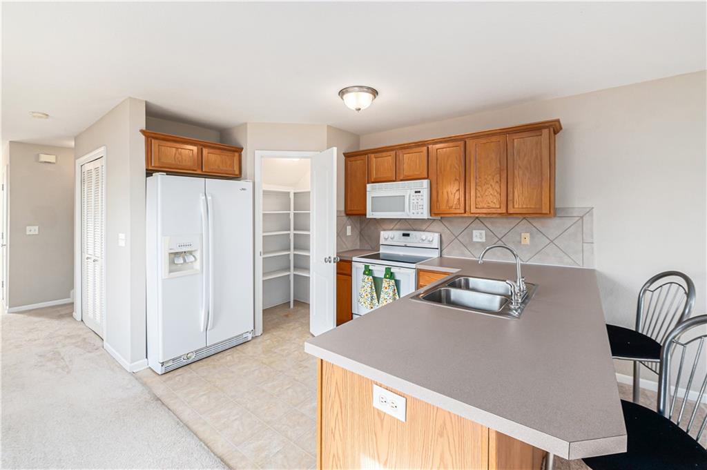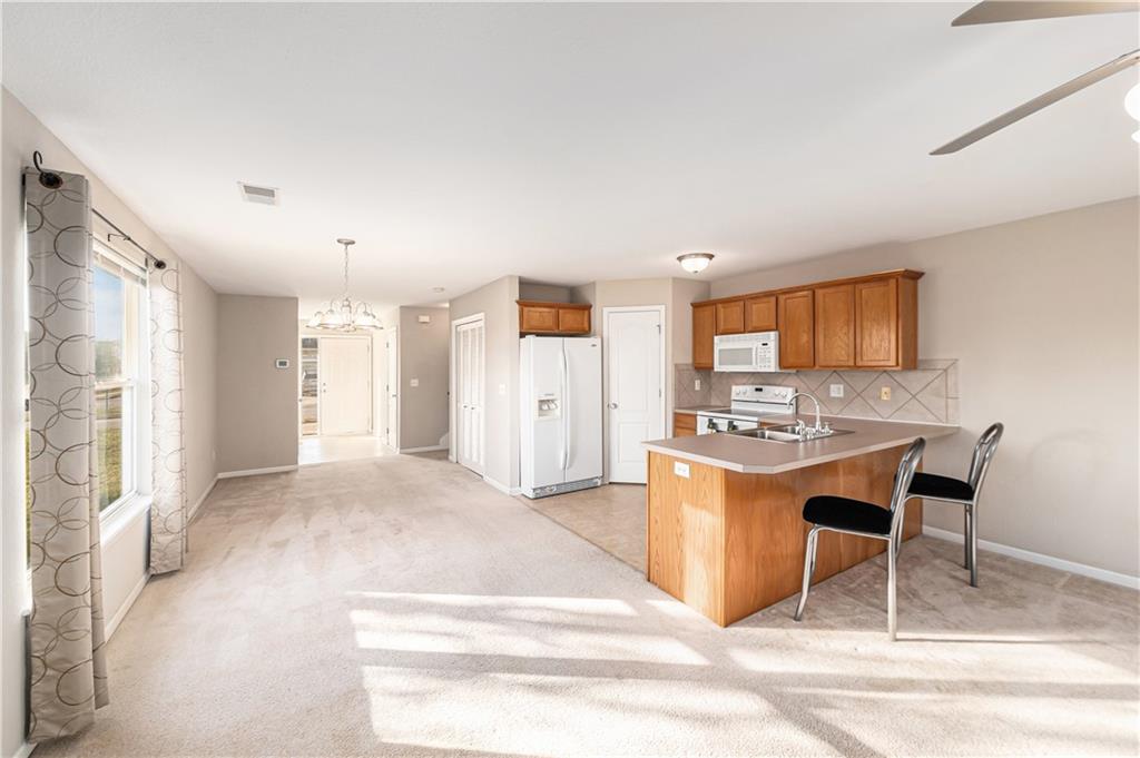 Location, location, and PRICE! Don’t miss this fabulous, maintenance-provided 3-bedroom, 2.5-bath townhouse perfectly positioned on a desirable corner lot with a one-car garage. Step inside to a welcoming main floor featuring a convenient half bath and an open-concept kitchen, dining, and living room. The kitchen offers a walk-in pantry, bartop seating for four, and includes all appliances,dishwasher, stove, refrigerator, and microwave,that remain with the home at closing. The living room is light and inviting with neutral paint, a ceiling fan, gas fireplace, and a slider leading to the private patio, ideal for relaxing or entertaining. Upstairs, you’ll find all three bedrooms. The spacious primary suite showcases a tray ceiling, new carpet, tray ceiling and ceiling fan. The ensuite bath offers both a jetted tub and a separate shower. Two additional bedrooms, a second full bathroom, and a dedicated laundry room (washer and dryer stay!) complete the upper level. Major updates add peace of mind, including a newer hot water heater, and new A/C. Situated just off 152 Highway and North Oak, with quick access to 435, 169, and I-35, this home offers unbeatable convenience for commuting, shopping, dining, and more.
