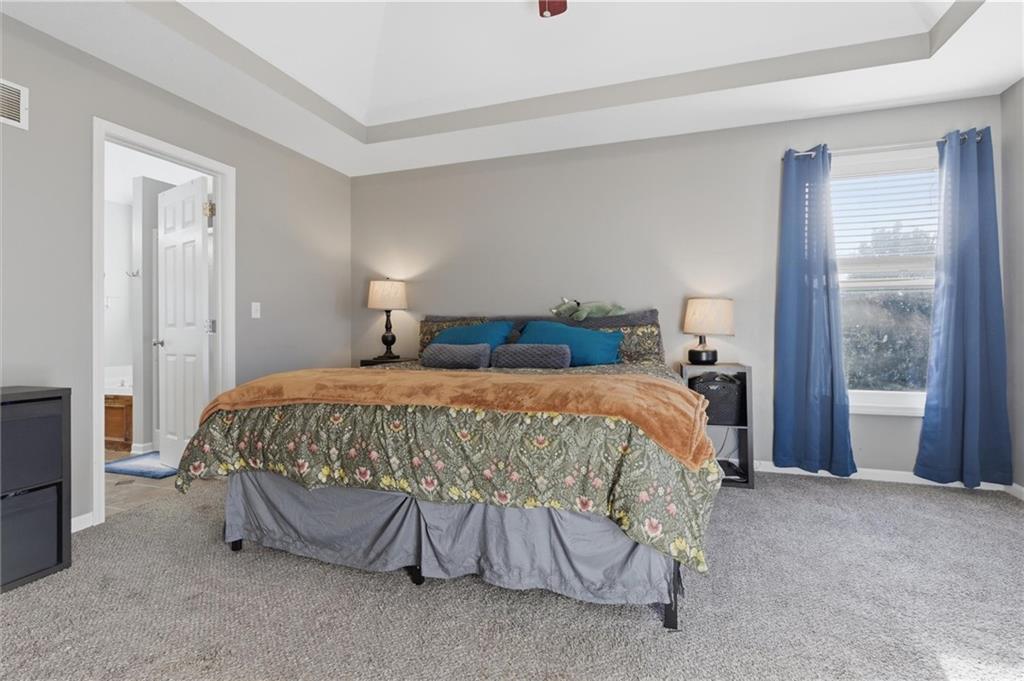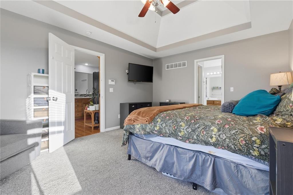 Don’t miss this awesome 3-bedroom, 3 full bath home! Step inside to vaulted ceilings and tons of natural light. The family room is warm and welcoming with a cozy fireplace, access to the back deck, and an open layout that flows right into the updated kitchen. The eat-in kitchen is perfect for hanging out or hosting, with quartz countertops, plenty of cabinets, The spacious primary suite is set apart from the other bedrooms for extra privacy. It features double quartz vanities, a separate shower, a relaxing soaker tub, and a walk-in closet. Two more good-sized bedrooms share a full bath with a shower/tub combo, and both have great closet space