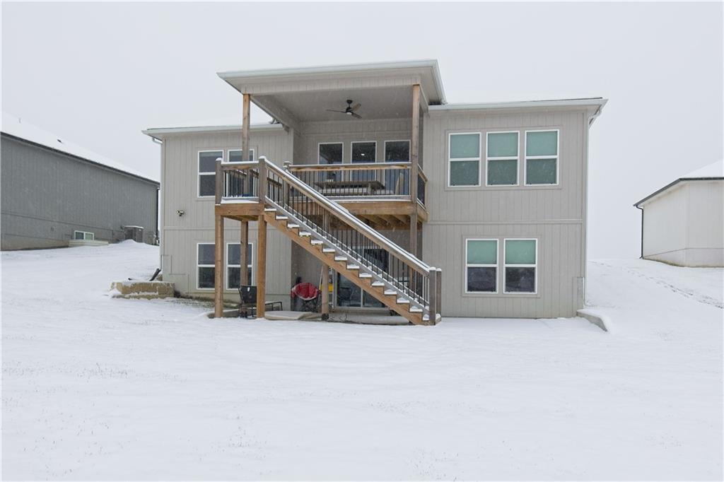 Fantastic, nearly-new reverse 1 1/2 story with 3 car garage is a “must see” property. KCMO address; Liberty schools. This contemporary style home, built in 2024, boasts an open floor plan with 4 bedrooms and 3 full baths. The master suite plus 2 bedrooms and 2nd bath are located on the main level; and a large rec room, 4th bedroom and 3rd bathroom are on the finished lower level with walkout (rare for this neighborhood). The kitchen features upgraded stainless steel appliances, granite countertops and walk-in pantry. Beautiful wood flooring throughout the main living area along with a gorgeous fireplace. The covered deck offers a great place to enjoy the view plus there’s a covered lower level patio, ideal for grilling or chilling. The unfinished portion of the lower level provides abundant storage space and could easily be updated to add a 5th conforming bedroom. HOA recently moved from developer control to property owner control.
