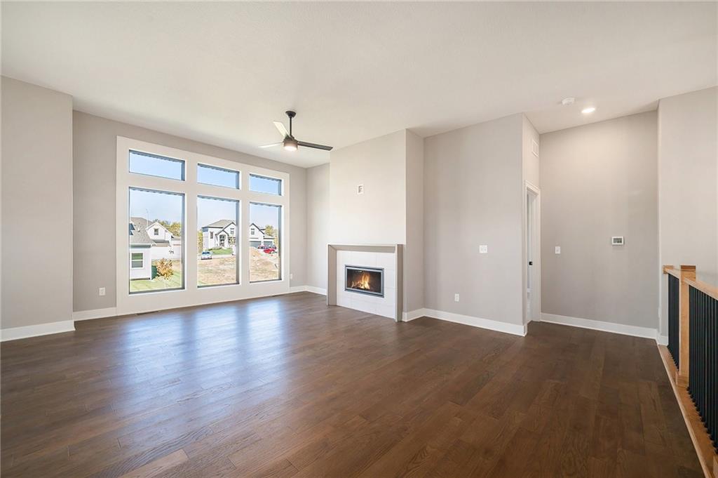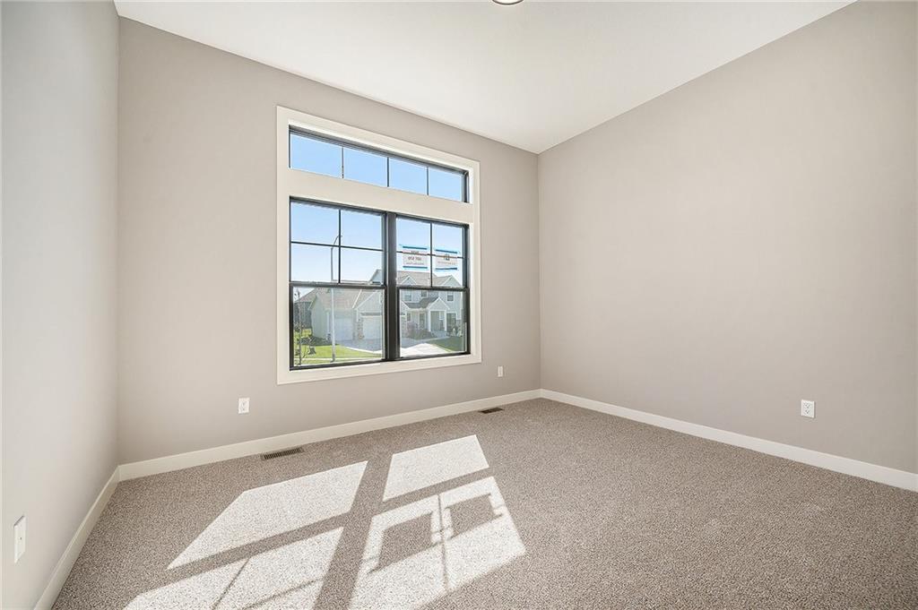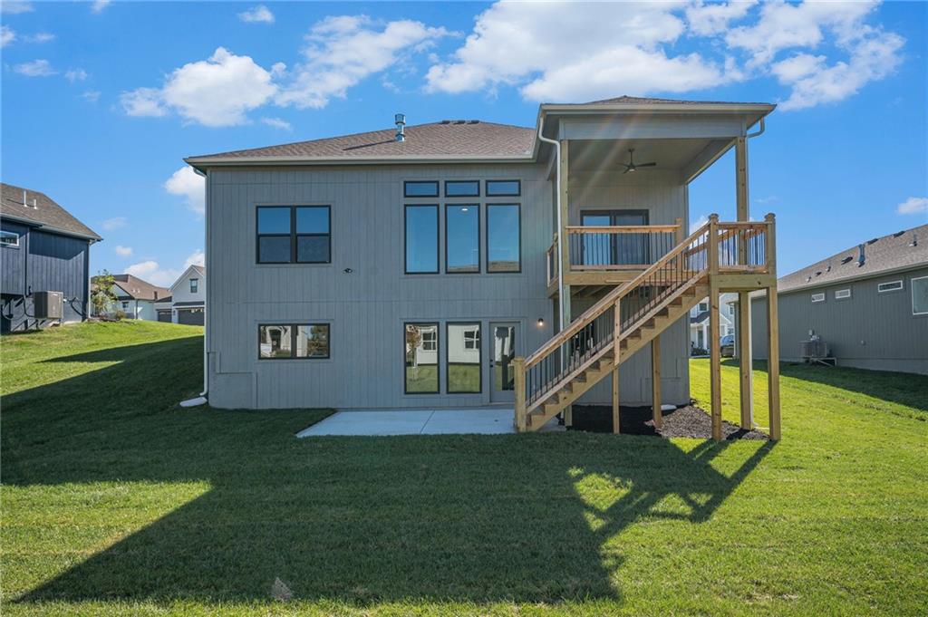 This McKinley Modern Farmhouse reverse 1.5-story by Hearthside Homes is COMPLETE. Offering 4 bedrooms, 3 bathrooms, and nearly 2,900 square feet of finished living space, this home combines thoughtful design with modern convenience. The main floor features a seamless flow between the great room, kitchen, and dining area, anchored by a fireplace and large island that make it perfect for gatherings. A walk-in pantry, covered deck, and 3-car garage with EV plug add function and flexibility. The primary suite includes a retreat-worthy bath with a freestanding tub, tiled shower, and double vanity, along with a massive walk-in closet that connects directly to the laundry room. A second bedroom and full bath complete the main level. Downstairs, the finished lower level offers a spacious family room with built-in wet bar, two additional bedrooms, a full bath, and generous storage. A walkout to the extended patio provides an ideal setting for outdoor entertaining or quiet evenings at home. Every Hearthside home includes a 12-month builder warranty and exceeds industry standards with third-party inspections covering cosmetic and mechanical systems, sewer line, and HVAC duct cleaning. Located in Benson Place, residents enjoy two community swimming pools, a splash park, fishing lake, playgrounds, walking trails, and abundant green space. Convenient access to major highways, the new KCI airport, and downtown Kansas City makes this Northland location a standout. With on-trend black framed windows and timeless farmhouse character, the McKinley blends comfort, style, and everyday livability in one remarkable package.