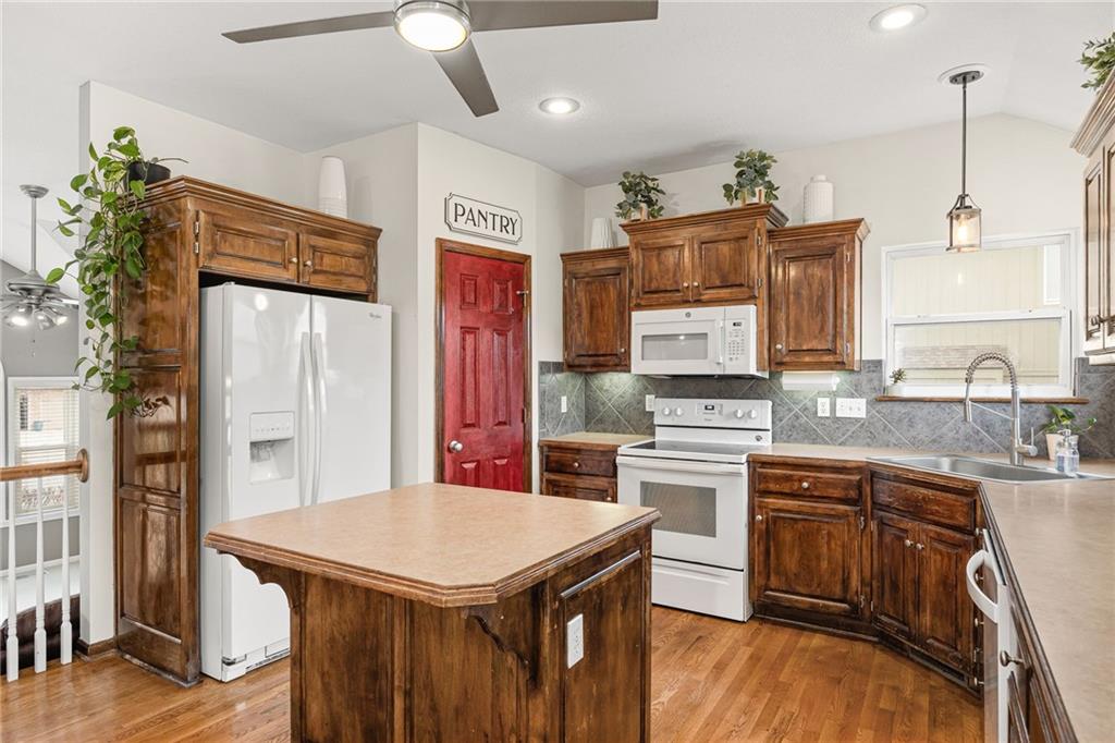 This thoughtfully updated home offers style, comfort, and peace of mind. The gorgeous primary ensuite was fully renovated in 2023, and the home features a newer roof and fresh exterior paint completed in 2021. The kitchen boasts tons of storage including 2 walk in pantries. Enjoy an open, split floor plan with excellent flow, including 3 main floor bedrooms with large closets and laundry on the same level. Your guests will enjoy their own space in the 4th bedroom and full bath on the lower level, along with an awesome family room in the walk out basement. A 3-car garage, fenced corner lot, and generous under-deck storage provide exceptional convenience. The inviting layout is perfect for everyday living and entertaining alike. Located in the award winning Liberty School District.