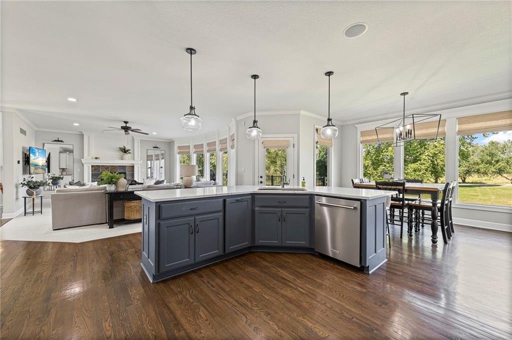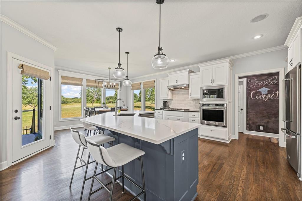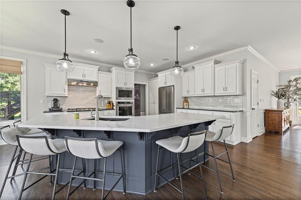 Welcome to this meticulously maintained one-owner 4-bed, 5-bath home on a .28-acre golf course lot backing to the 4th hole at Hodge Park Golf Course in the sought-after Fairways subdivision. With 4,158 finished square feet, this home offers luxury, comfort, and functionality at every turn. The owners handpicked this lot for its serene views, enjoyed from multiple rooms throughout. Step inside to a grand entry and expansive & open main floor living space. The renovated kitchen boasts a gas range, oversized walk-in pantry, and abundant counter space & island —perfect for cooking and entertaining. Spacious mudroom/drop zone connects to a dedicated laundry room with a laundry chute. Upstairs, the private bedrooms are generously sized, including a luxurious primary suite. The finished walkout basement is made for entertaining with a home theater, bar, and access to a flat backyard ideal for games and gatherings. Additional highlights include a new composite deck, whole-home audio system, extended 3rd garage bay for golf cart/workshop, Custom-designed storage throughout, metal framing in the basement, and well-maintained Pella windows. NOTE- Pre-inspection & Home Warranty available for buyer peace of mind. Neighborhood perks include a pool, playground, and public golf course access, all within the top-rated Liberty School District. Don’t miss your chance to own this exceptional home in one of the Northland’s most desirable communities!