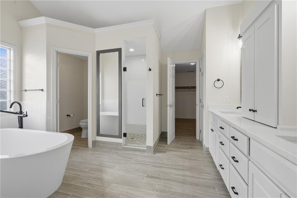 Enjoy a luxurious primary suite with an oversized walk-in closet and spa-like bath with heated tile floors. The finished basement includes a stylish bar—perfect for entertaining. Outside, relax on the expansive 553 sq ft covered composite deck overlooking a fully fenced backyard.