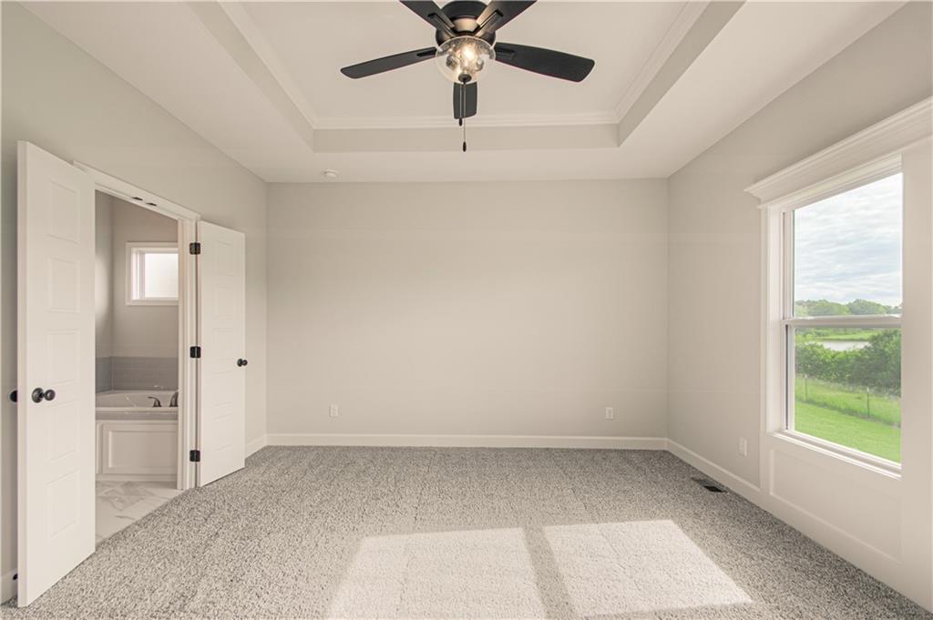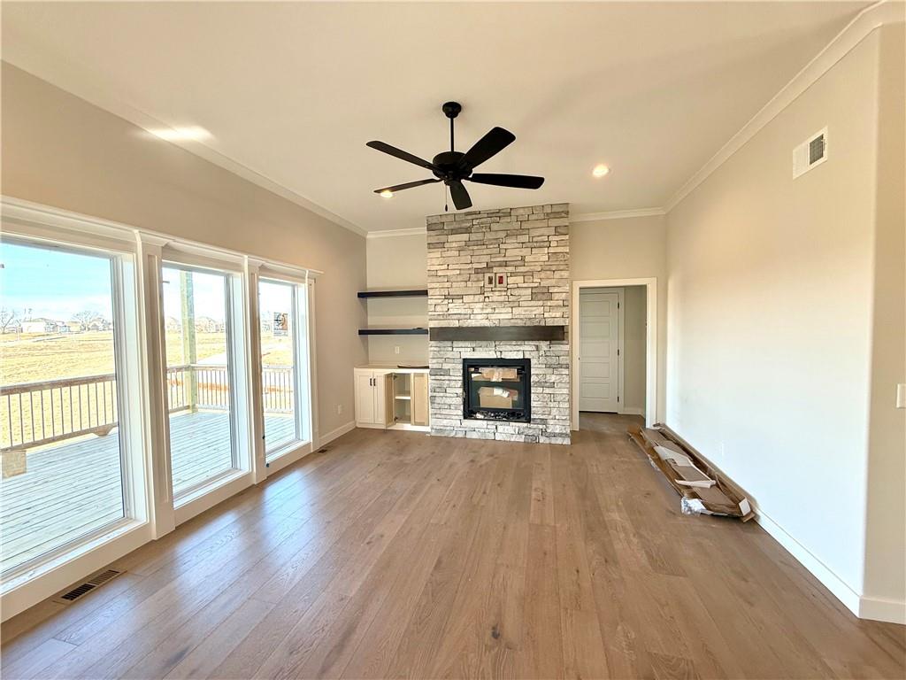 ***ASK ABOUT BUILDER RATE BUYDOWN INCENTIVE*** LESS THAN 30 DAYS TO COMPLETION! The “KENNA” by Robertson Construction sits on a PREMIUM LOT with a Beautiful setting BACKING TO LAKE! Super location close to local amenities and shopping! This Gorgeous Reverse 1.5-Story, with an unobstructed Lake View, offers 4 bedrooms, 2 on the Main Level, 3 Full Baths and is built with 2×6 exterior walls, an upgraded insulation package along with a super high efficiency heating and cooling system! An Open Layout features Floor to Ceiling Windows showing off the peaceful view, Stone Fireplace accented with Floating Shelves, Kitchen Island, Solid Surface Countertops, Custom Built Cabinets, WALK-IN PANTRY and Wide Plank Engineered Hardwood Flooring. Oversized Covered Deck is accessible from both the Master Suite and Breakfast Area. The PRIVATE Master Suite has a luxurious Master Bath and WALK-IN Closet that conveniently adjoins to the Laundry Room. You will find more Finished Square Footage in the WALKOUT Basement featuring Floor to Ceiling Windows, 2 more Bedrooms, Full Bath, LARGE FAMILY ROOM and a generous amount of storage! PATIO at WALKOUT. Located in the highly-rated Liberty North School District! SUBDIVISION POOL.