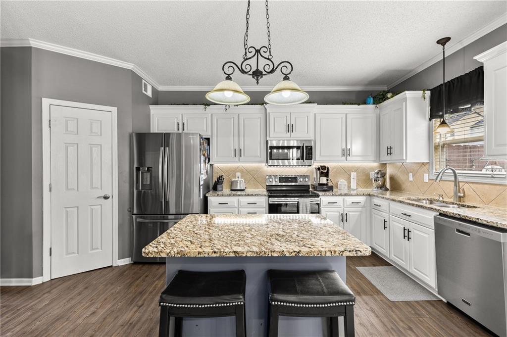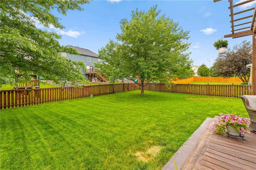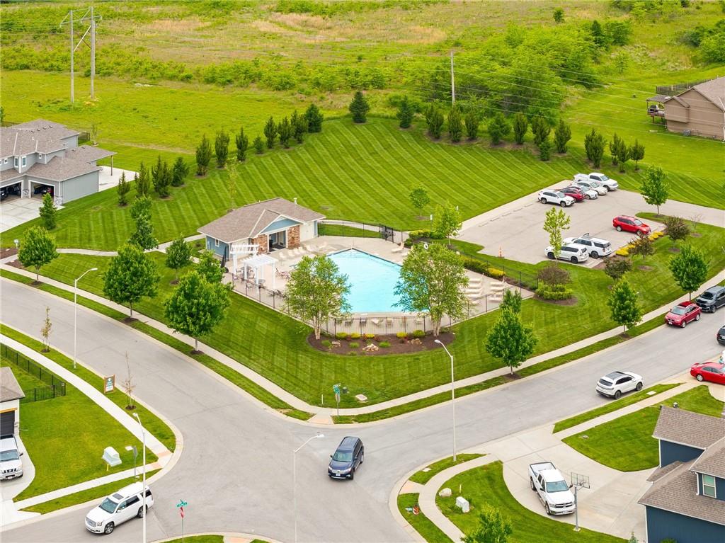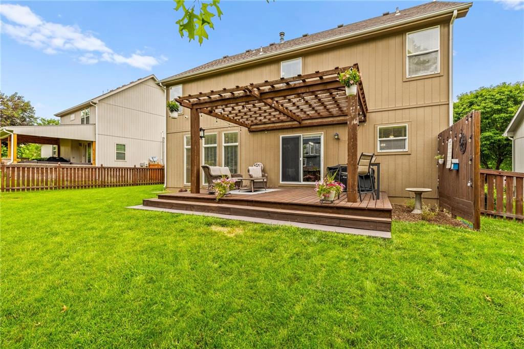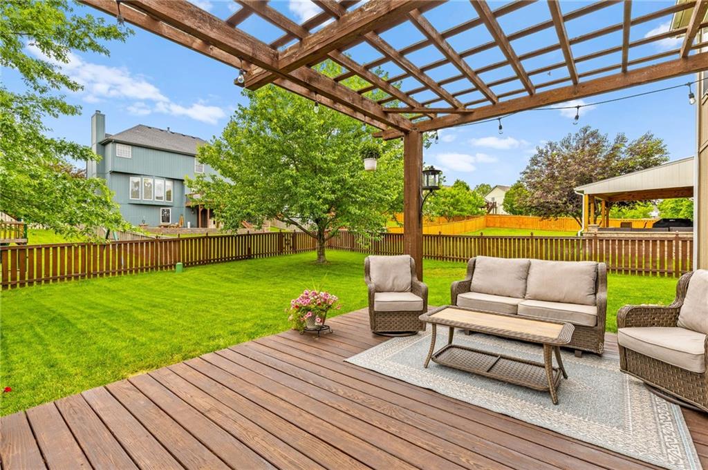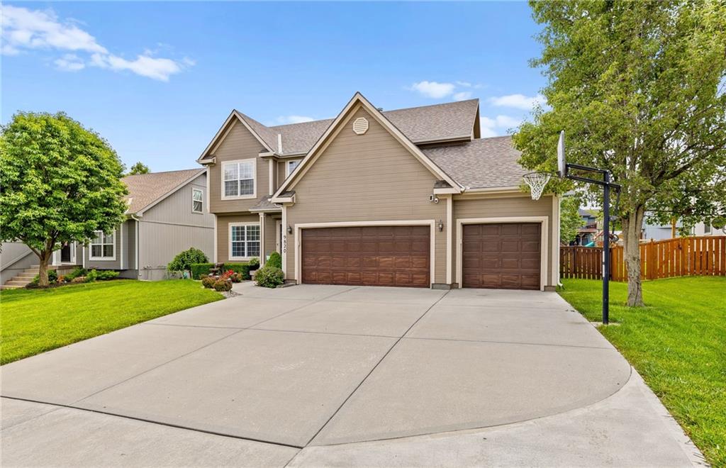 A MUST SEE! This home won’t last! Move-in ready, immaculately maintained two-story home with tons of living space, a coveted 3-car garage and driveway, and LOTS of updates and features beyond the norm for this neighborhood. This two-story home has it all! The beautifully landscaped, low maintenance finishes, provide a warm, welcoming entry to your new home. As you enter the home, the main level boasts an open concept, spacious floor plan featuring upscale finishes, soaring ceilings, and many newer updates including luxury vinyl plank flooring, granite countertops, painted cabinets, stainless steel appliances, a walk-in pantry and a gas fireplace. From this level, you will gain access to the large, well-maintained, fenced back yard that includes a deck over the concrete patio, a privacy side fence, a pergola and bonus storage from the attached shed – perfect for relaxing or entertaining. The second floor includes 4 generously-sized bedrooms and 2 full bathrooms. The master suite includes a large bedroom and an en suite bathroom featuring a jetted bathtub, dual vanity, custom onyx walk-in shower with sliding door and 2 huge closets! Not to be missed, the finished basement featuring a huge extra living space with an entertainment area including a bar with tons of seating, a large living room, a half bath and a bonus area that can serve as an extra, non-conforming bedroom, a workout space or additional storage, not including the utility room that offers even more storage area. Located in the sought-after Liberty School District, Benson Place Parkfield offers a prime location near shopping, dining and highway access. Both downtown Kansas City and the KC International Airport are less than 20 miles away. Neighborhood amenities include 2 community pools, a recreation area, a 5-acre lake, a playground, walking trails and over 40 acres of parkland and natural areas. There are too many incredible additions to this house to cover them all. Come see this home before it’s gone!