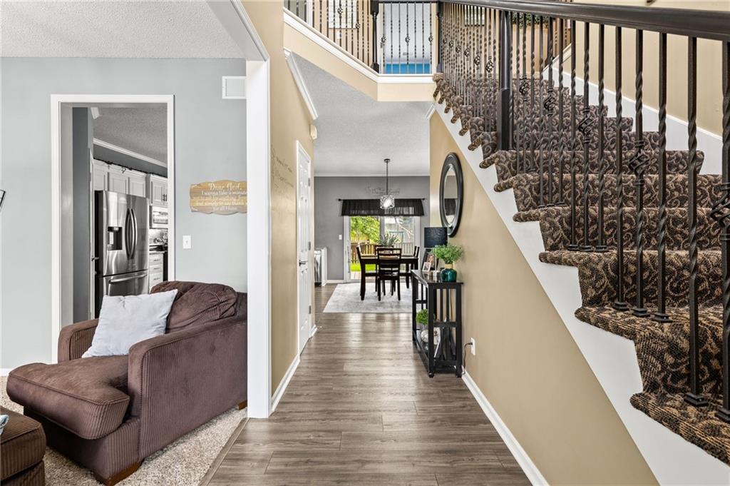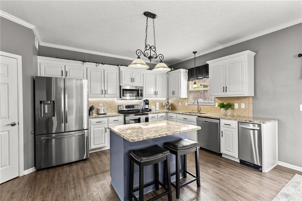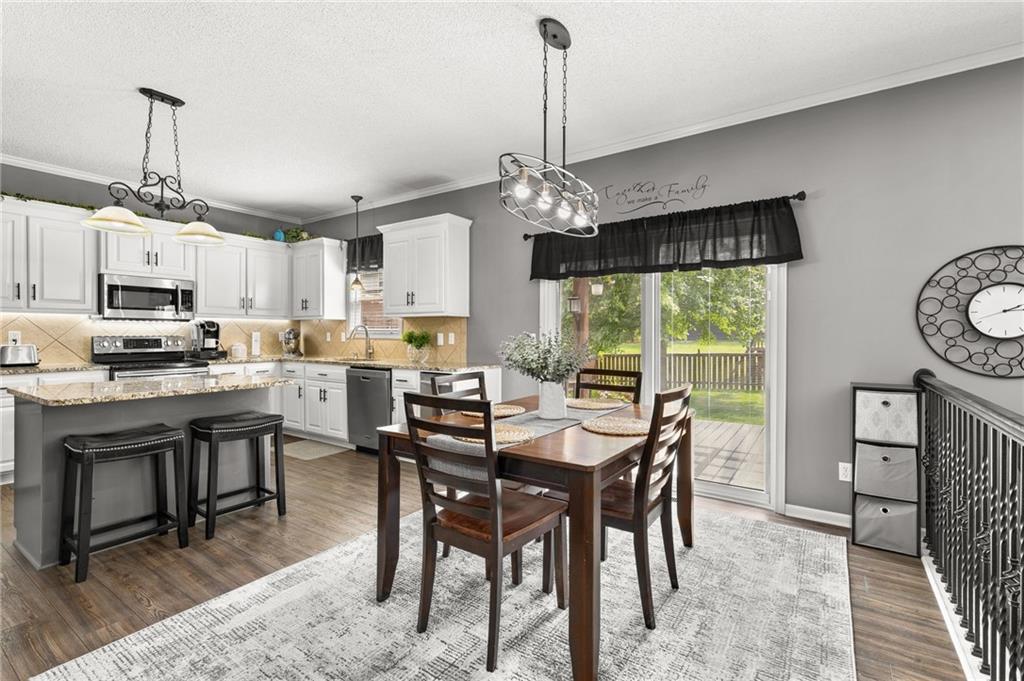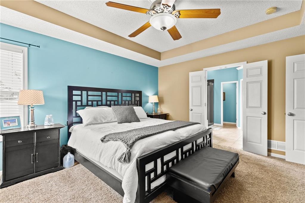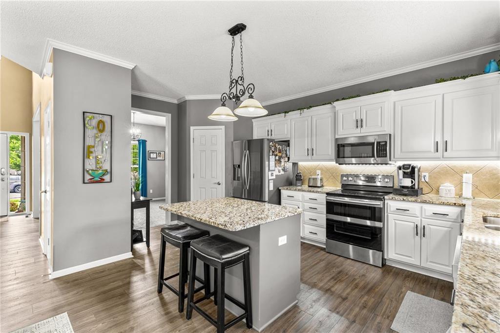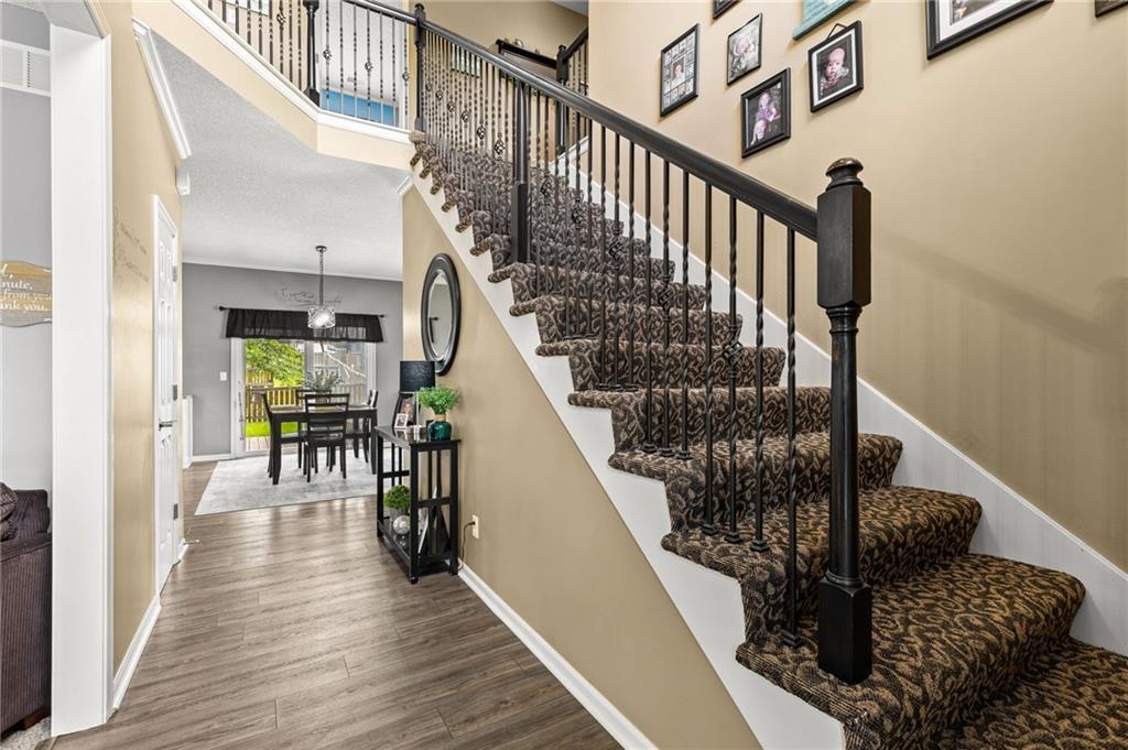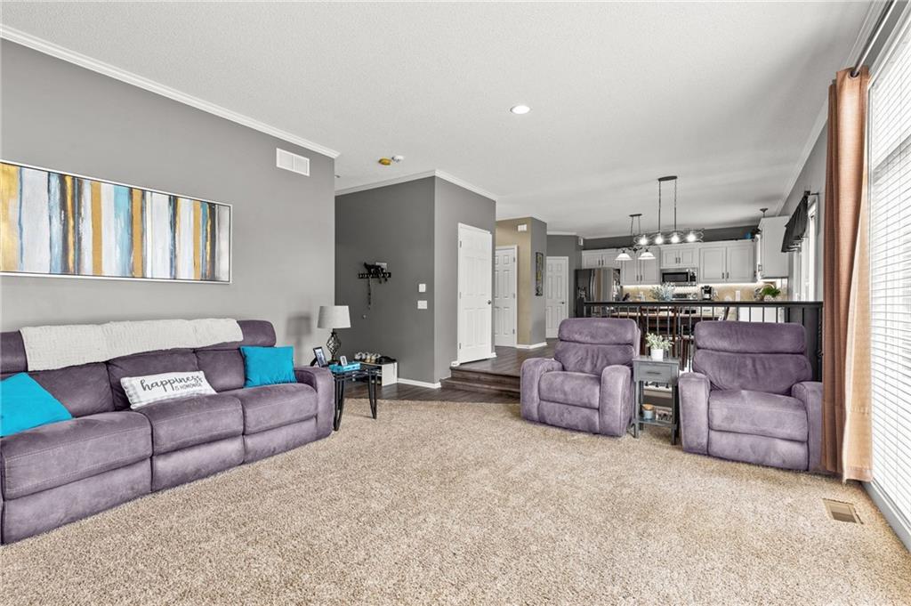 A MUST SEE! This home won’t last! Move-in ready, immaculately maintained two-story home with tons of living space, a coveted 3-car garage and driveway, and LOTS of updates and features beyond the norm for this neighborhood. This two-story home has it all! The beautifully landscaped, low maintenance finishes, provide a warm, welcoming entry to your new home. As you enter the home, the main level boasts an open concept, spacious floor plan featuring upscale finishes, soaring ceilings, and many newer updates including luxury vinyl plank flooring, granite countertops, painted cabinets, stainless steel appliances, a walk-in pantry and a gas fireplace. From this level, you will gain access to the large, well-maintained, fenced back yard that includes a deck over the concrete patio, a privacy side fence, a pergola and bonus storage from the attached shed – perfect for relaxing or entertaining. The second floor includes 4 generously-sized bedrooms and 2 full bathrooms. The master suite includes a large bedroom and an en suite bathroom featuring a jetted bathtub, dual vanity, custom onyx walk-in shower with sliding door and 2 huge closets! Not to be missed, the finished basement featuring a huge extra living space with an entertainment area including a bar with tons of seating, a large living room, a half bath and a bonus area that can serve as an extra, non-conforming bedroom, a workout space or additional storage, not including the utility room that offers even more storage area. Located in the sought-after Liberty School District, Benson Place Parkfield offers a prime location near shopping, dining and highway access. Both downtown Kansas City and the KC International Airport are less than 20 miles away. Neighborhood amenities include 2 community pools, a recreation area, a 5-acre lake, a playground, walking trails and over 40 acres of parkland and natural areas. There are too many incredible additions to this house to cover them all. Come see this home before it’s gone!
