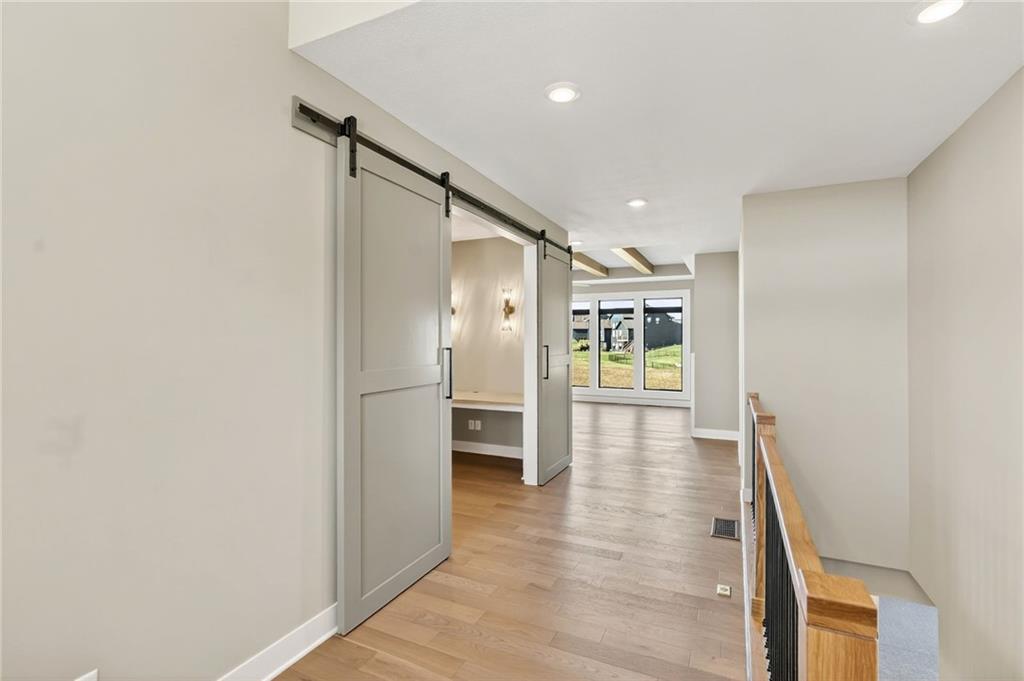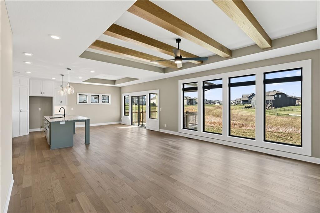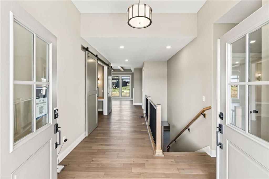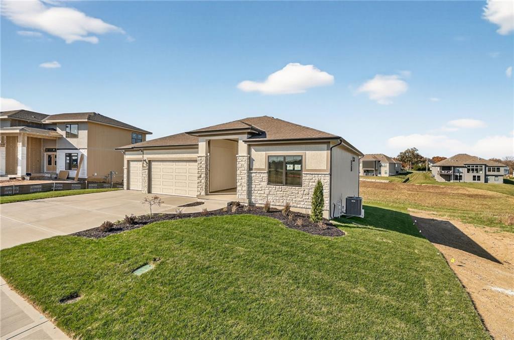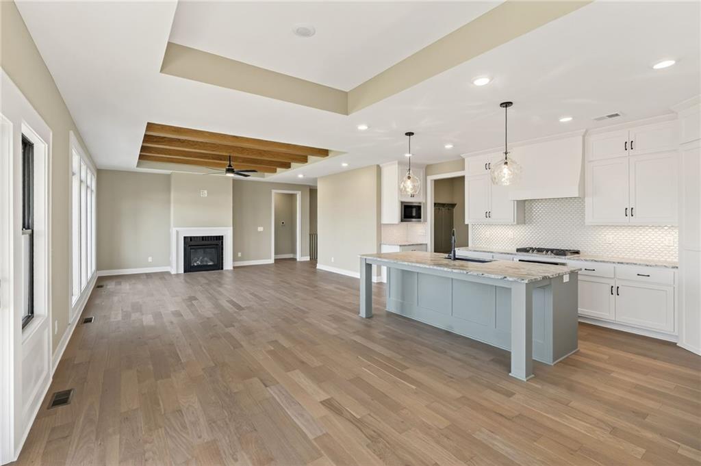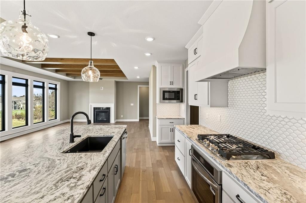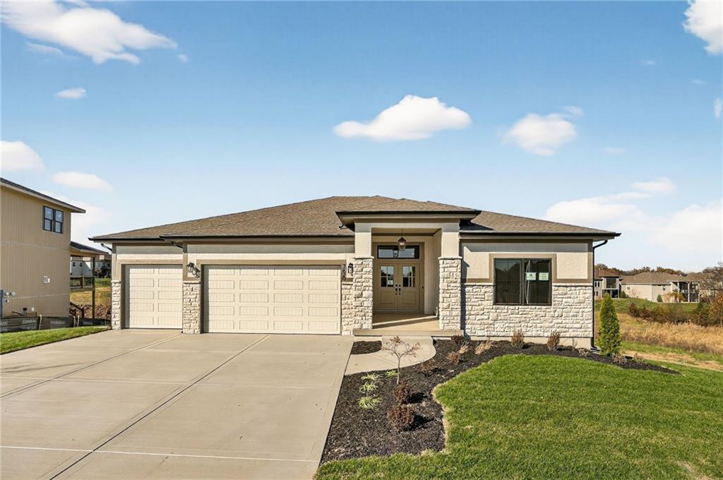 Move-in ready and filled with thoughtful design details, The Ashton by Hearthside Homes offers the perfect setting for modern living. This refined Reverse 1.5-Story combines timeless craftsmanship with today’s most desired finishes in one of the Northland’s premier communities. Step through the double front doors into a welcoming foyer that provides privacy and a glimpse of what’s ahead. The great room showcases beamed ceilings, a designer fireplace, and large windows that fill the space with natural light. The kitchen features quartz countertops, gas cooktop with wood hood, under cabinet lighting, walk-in pantry, and a large island ideal for dining or entertaining. The primary suite includes a spa-style bath with shower and tub room, dual vanities, and a walk-in closet connected to the laundry. A main-level office with built-ins and second bedroom provide flexibility for guests or work-from-home needs. The finished walkout lower level offers two bedrooms, full bath, family room with wet bar, and ample storage. Upgrades include EV charger, Ring doorbell, keyless entry, and irrigation system. Hearthside Homes provides a 12-month builder warranty, third-party inspections, verified sewer scope, and professional duct cleaning. Davidson Farms offers clubhouse, pool, pickleball, pond, and trails—just 15–20 minutes to KCI and Downtown KC, in Liberty Schools!