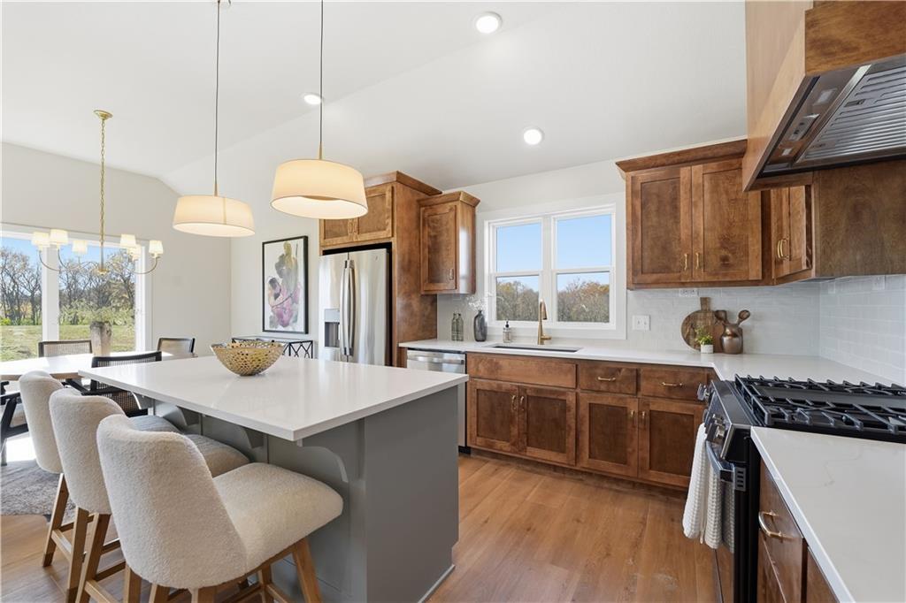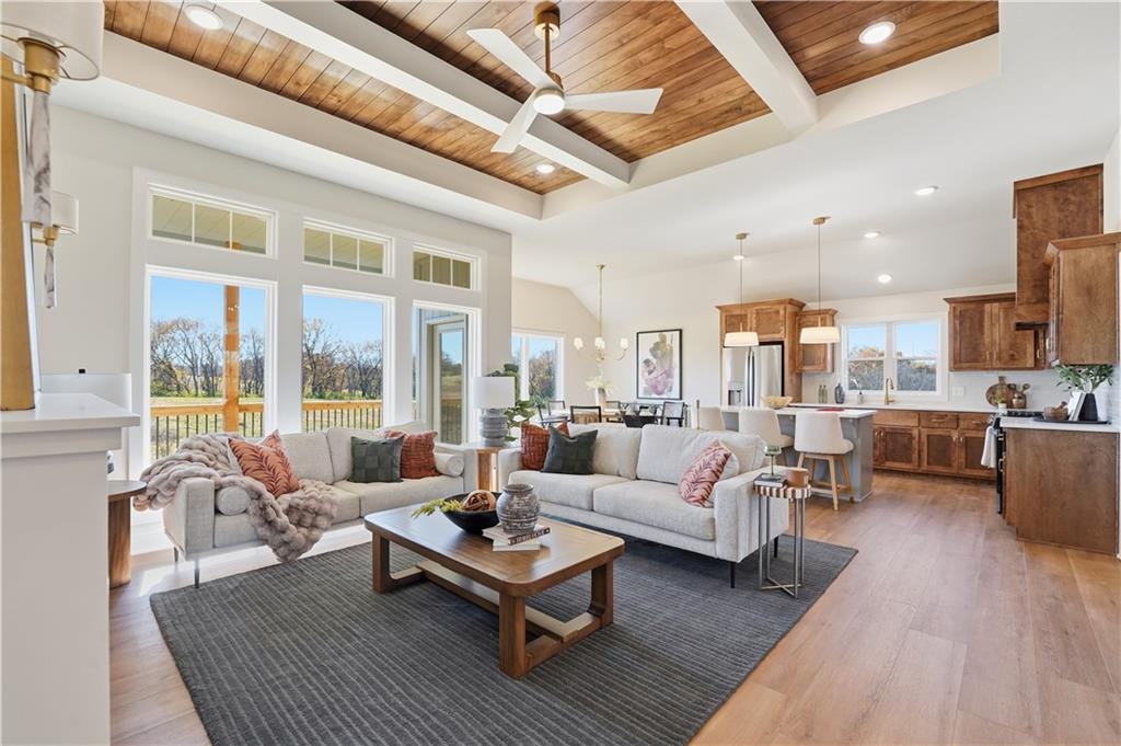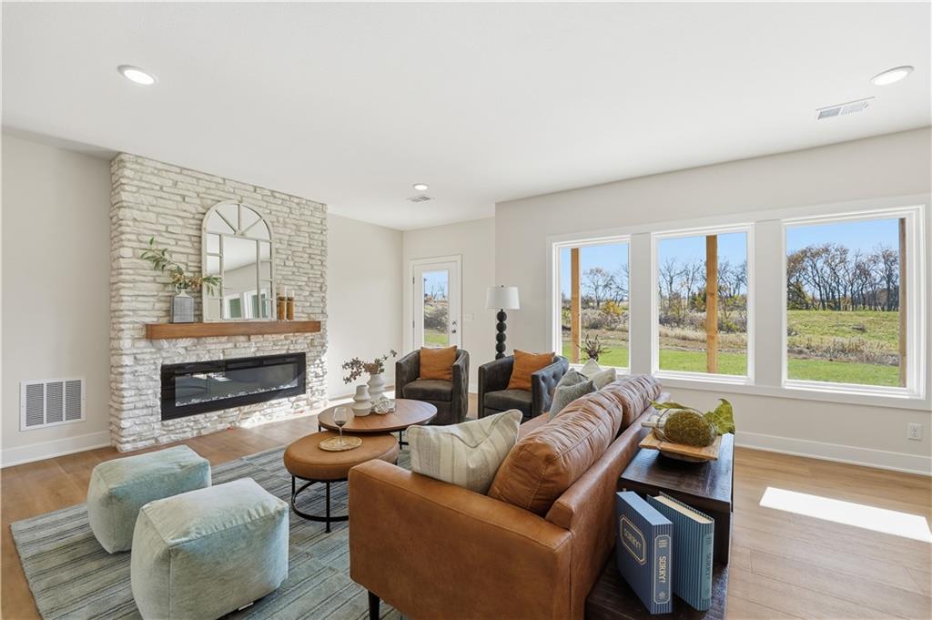 Discover the AZALEA GOLD by Gary Kerns Homebuilders—a beautifully designed open-concept home that perfectly blends modern comfort with timeless craftsmanship. From the moment you walk in, you’ll notice the abundance of natural light and attention to detail. This energy-efficient home features a 96% gas furnace and a built-in humidifier to keep you comfortable all year long, while Low E windows provide energy savings and a warm, inviting atmosphere. The chef-inspired kitchen is a true showstopper—complete with sleek stainless steel appliances, a gas range, custom cabinetry, quartz countertops with island. A walk-in pantry adds even more convenience, making both everyday meals and entertaining a breeze. The finished walkout lower level offers extra living space that’s perfect for movie nights, game days, or just relaxing at home. And with custom-build options available, you can personalize your home to match your style and lifestyle. Come tour our move-in ready, fully furnished model home to see the quality for yourself—or schedule a consultation to start building your dream home from the ground up. Located in the highly rated Smithville AAA School District, Woodland Creek offers scenic, spacious lots near Smithville Lake, just minutes from KCI Airport. Exceptional craftsmanship. A picturesque setting. Your dream home starts here. Stop by today and let’s make it happen!