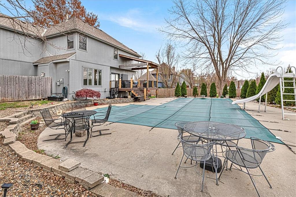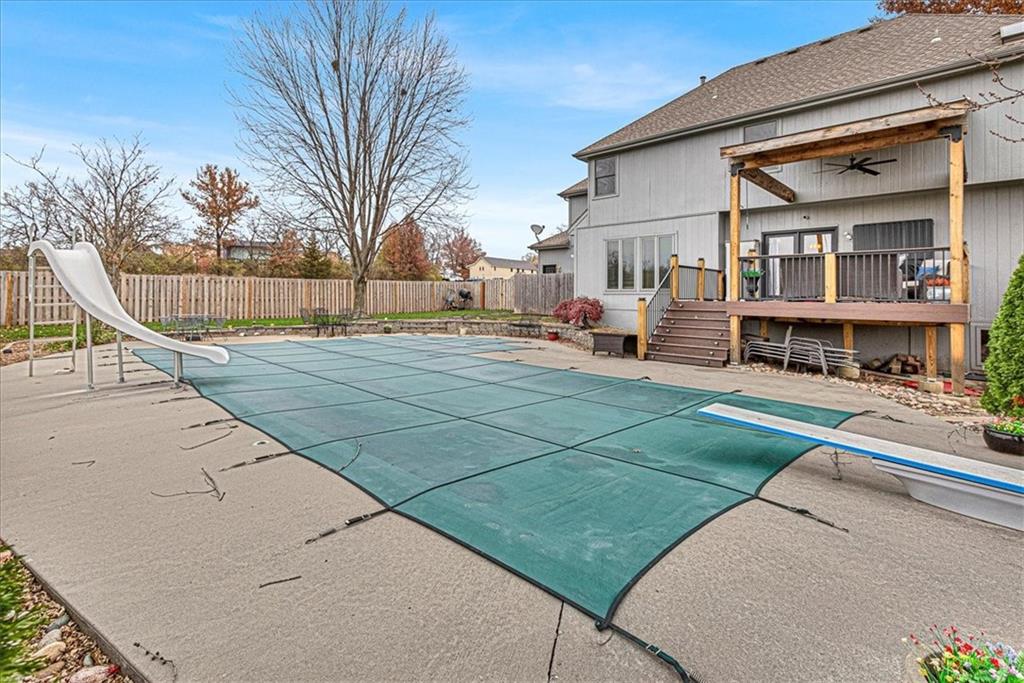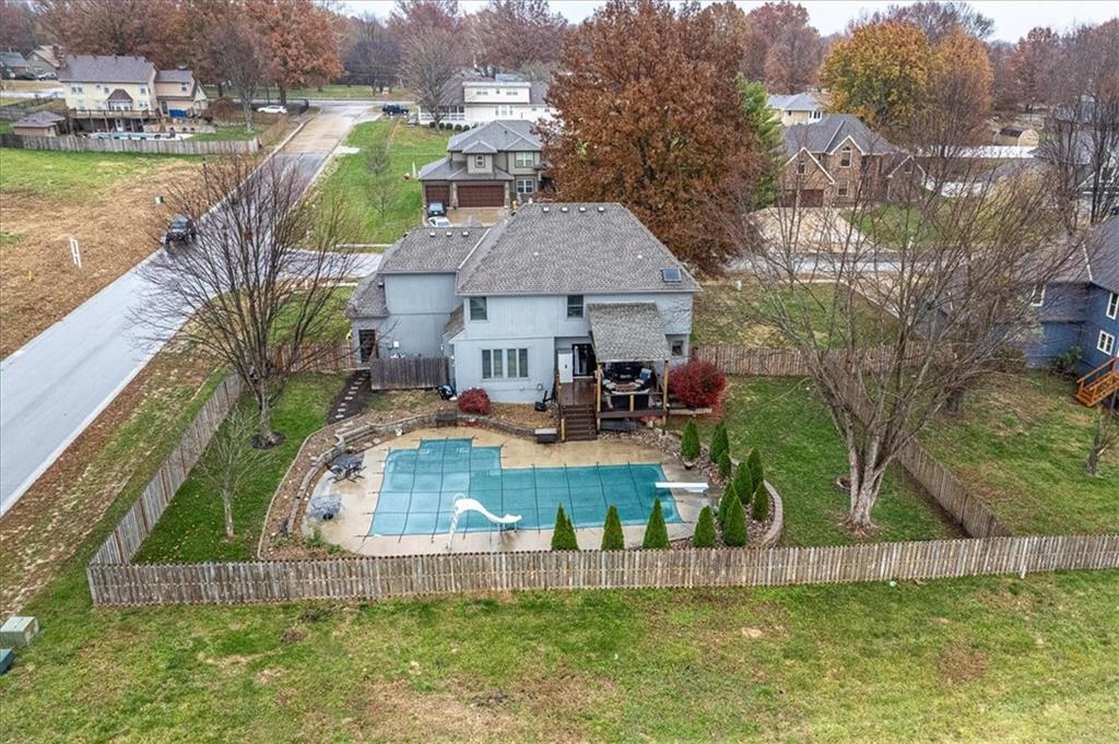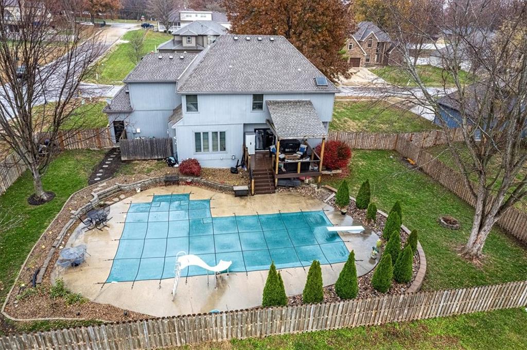 POOLS OPEN!!!! Welcome to your dream home! Nestled in the charming community of Kearney, this stunning 2-story home offers 4 bedrooms & 4.5 bathrooms, with an in-ground saltwater pool. Enjoy 4 generously sized bedrooms, designed for maximum comfort and privacy. The master suite boasts a walk-in closet and en-suite bathroom for your personal retreat. The open-concept living and dining area is perfect for entertaining or family gatherings. Cozy up in the family room complete with a fireplace, ideal for those chilly Missouri nights. The basement has new carpet & new paint, rustic bar, and full bathroom. The kitchen offers newly painted cabinets, pantry and a convenient breakfast bar. Ample cabinet space ensures everything you need is at your fingertips. Check out the Outdoor Oasis! Step outside to your covered deck, leading down to your in-ground pool surrounded by beautifully landscaping, and 6′ privacy fence. This outdoor space is perfect for summer barbecues, gatherings, or simply soaking up the sun. The spacious 3-car garage provides plenty of storage and parking options, with additional driveway space available for guests. Situated in an established neighborhood, this home is just minutes to the highway, grocery store, dining, shopping, and walking distance to Kearney Elementary School.