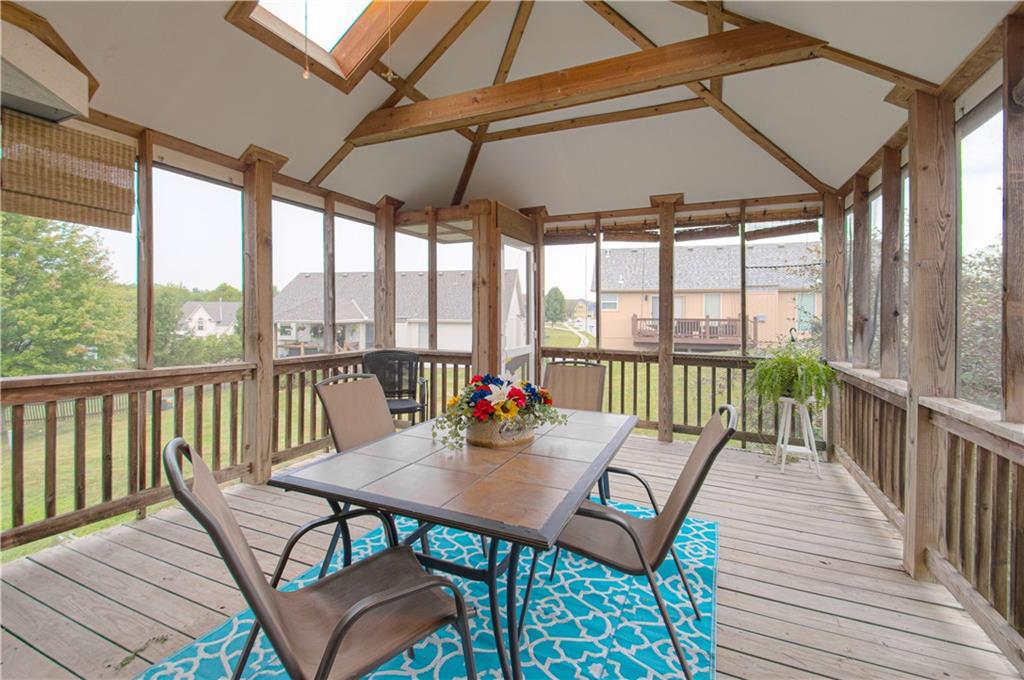 Relax and unwind on the screened-in porch, perfect for enjoying crisp fall evenings and comfortable three-season use. You’ll love the ample storage throughout, plus the added peace of mind with a built-in storm shelter.