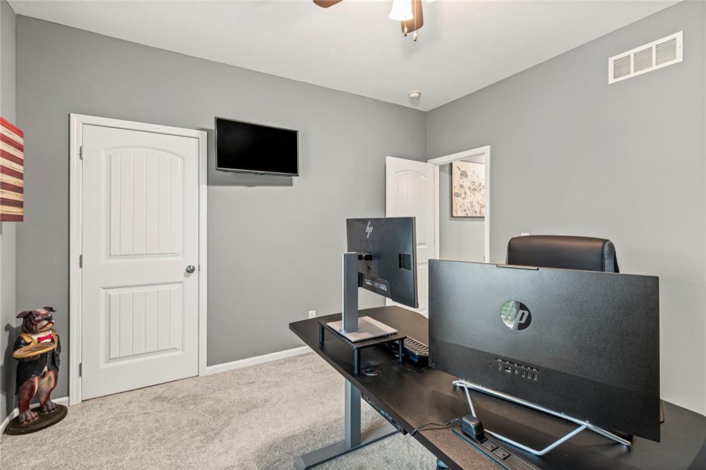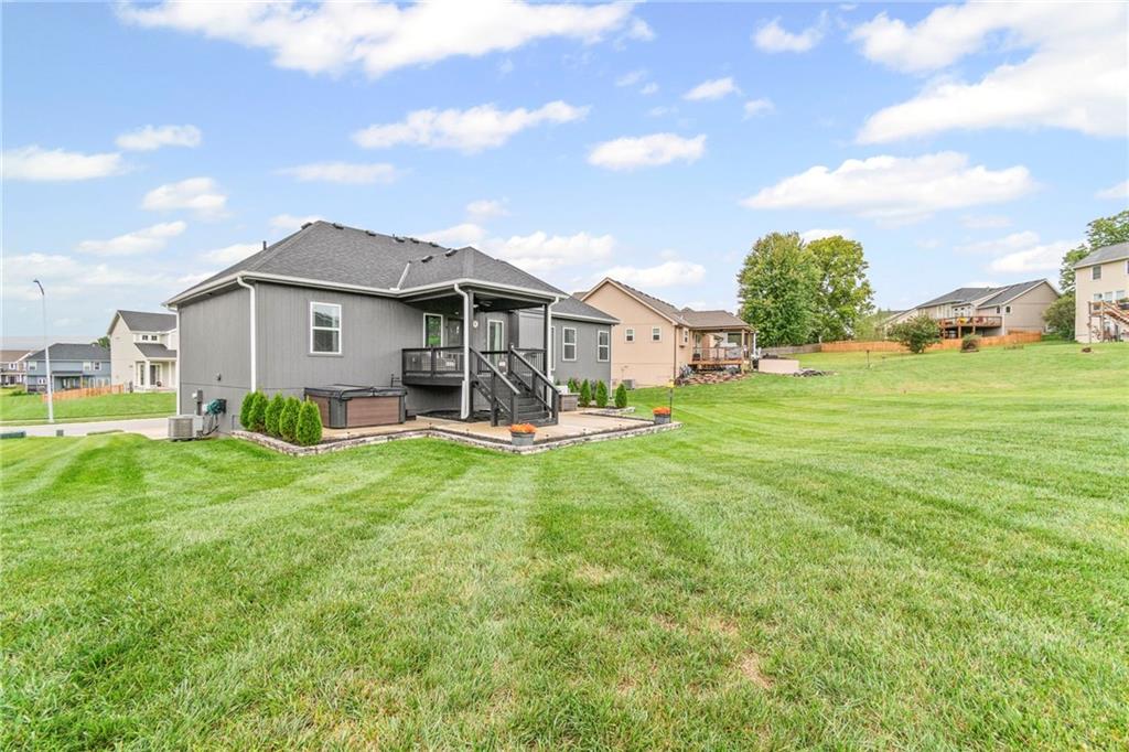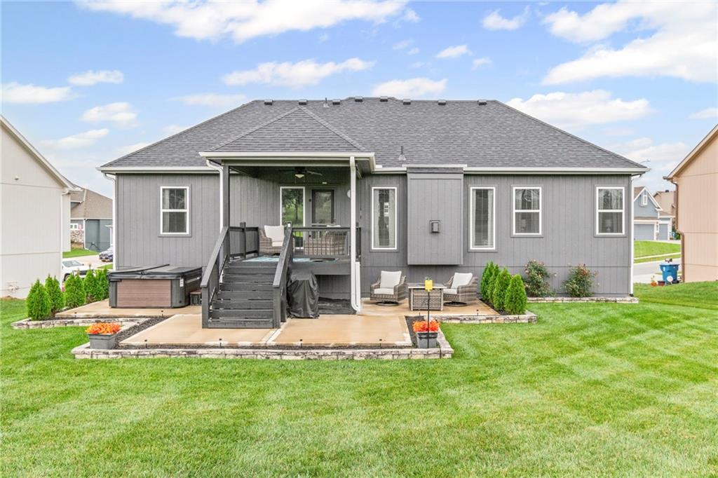Out back, unwind on the covered deck or entertain on the extended patio overlooking the beautifully maintained yard. With an oversized three-car garage and access to Clay Meadows’ neighborhood pool, this home blends small-town Liberty charm with modern style and convenience.