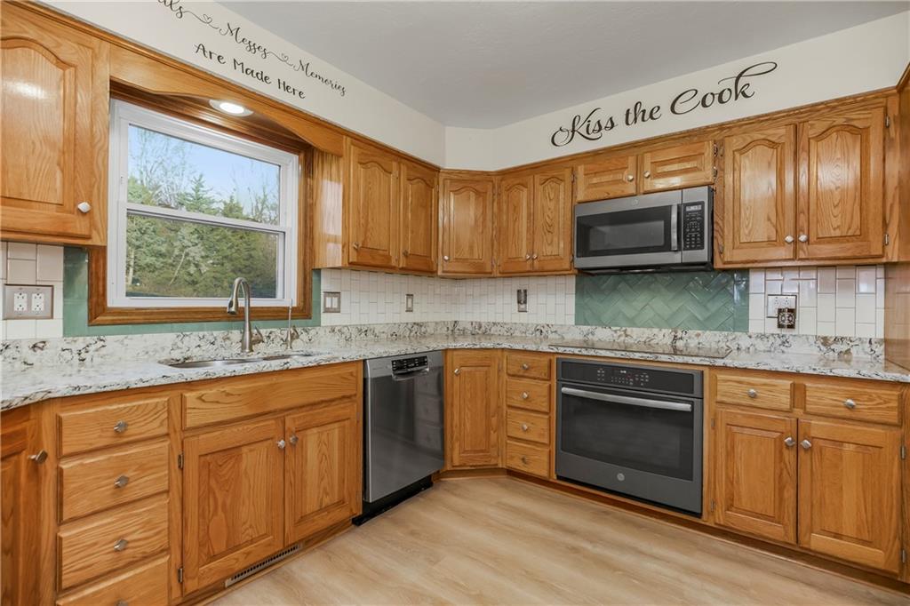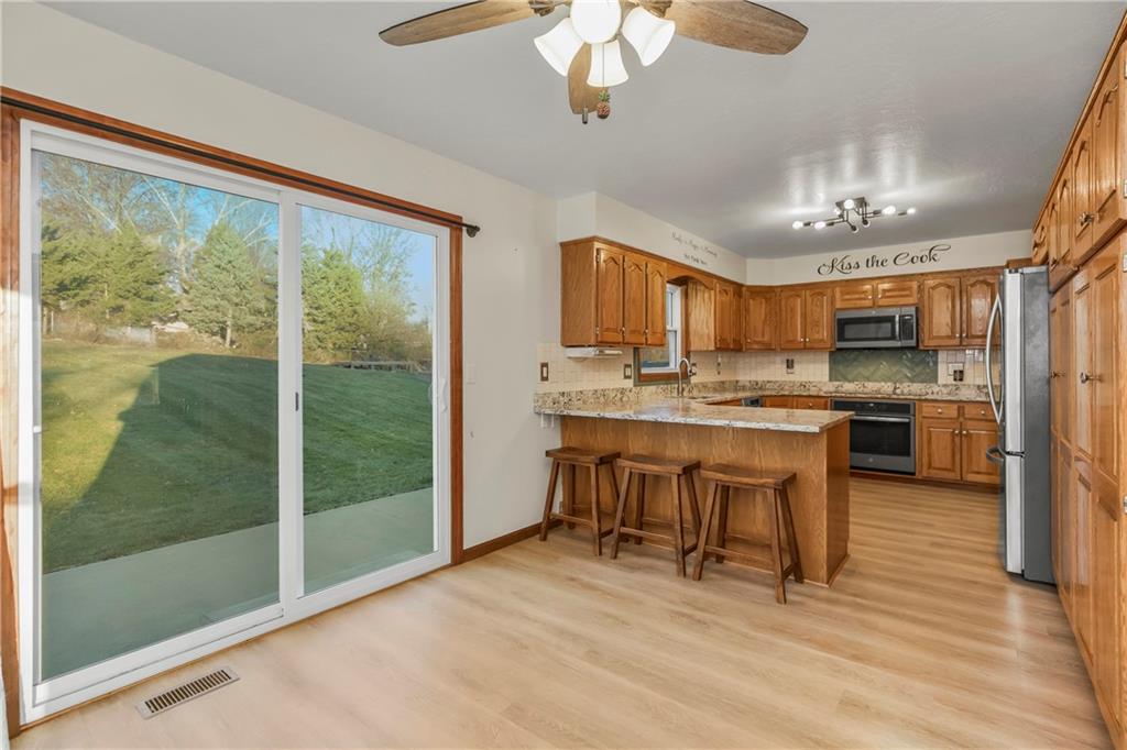 Can you imagine finding a home under $385,000 IN LIBERTY with UPDATED windows, gutters, AC, furnace, renovated bathrooms, updated flooring in living/kitchen, tankless water heater, updated attic insulation, quartz countertops in the kitchen, and upgraded ~$40,000+ PREMIUM*EXTRA THICK*AND*INSULATED*SIDING – with 6 bedrooms – AND on almost a half-acre lot – in one of the best neighborhoods in Liberty?! Oh, and the main living room has a freestanding fireplace that performs like a champ and is a secondary option to using the central heating! The primary bedroom is on the main level with a completely renovated private bathroom. Enjoy the oversized laundry room with its own walk-in closet! Upstairs, there are 5 more bedrooms – CAN YOU SAY FLEXIBILITY?! The finished basement provides another living space for escape and indoor recreation. Side entry garage of dreams with separated bays provides for even more flexibility and workshop options! Enjoy the open floorplan with updated flooring between the living, dining, and kitchen areas. The back patio becomes a natural extension of the main level for gatherings and casual evenings. Location, location, location. This home is a short walk to the park, easy access to shopping, I-35, and is in the highly sought after Lewis & Clark Elementary boundaries of the Liberty School District. Experienced buyers will understand the value of having such important & expensive updates (premium siding, updated windows, HVAC, GUTTERS, renovated bathrooms, insulation)!!