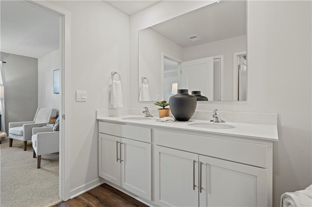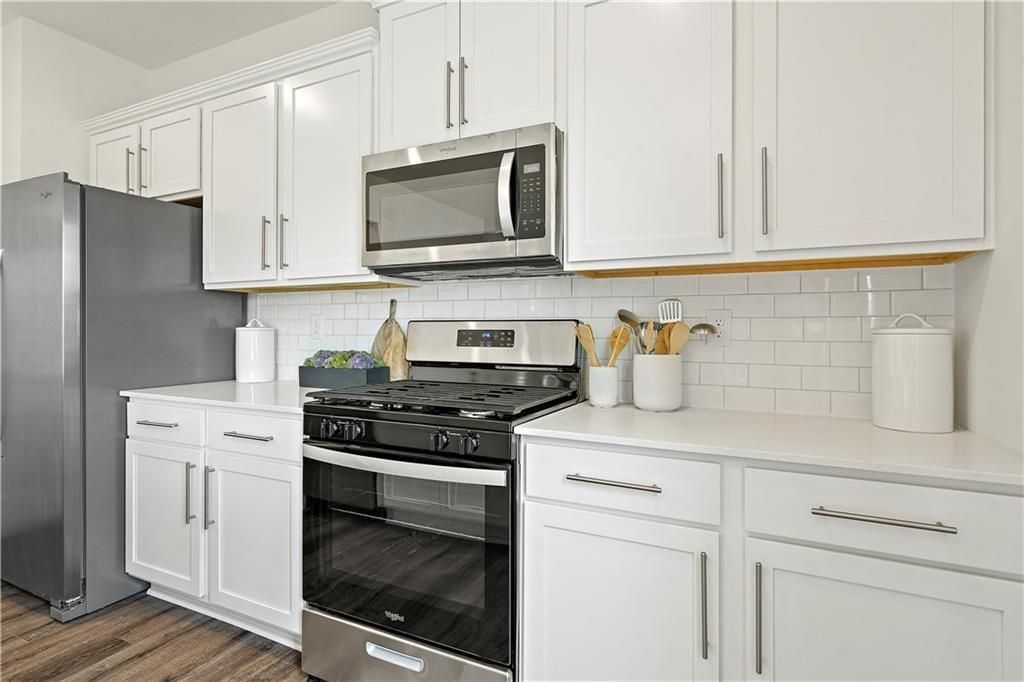 Welcome to Ella’s Crossing, where modern design meets timeless elegance in this exceptional home crafted by D.R. Horton, “America’s Builder.” This residence greets you with a three-rail, two-panel insulated front door that enhances both curb appeal and energy efficiency. Step inside to find a beautifully appointed interior with 9-foot ceilings that exude sophistication. The chef’s kitchen is the heart of the home, featuring 36-inch painted maple cabinets, quartz countertops, and state-of-the-art Whirlpool® stainless steel appliances, all designed to make cooking a pleasure. Retreat to the spa-inspired bathrooms, where quartz-topped vanities, Moen® Chrome Faucets, and luxurious showers await. The primary bath offers a 5-foot shower with a framed glass enclosure, ensuring your daily routines are indulgent experiences. This home is designed for the future with advanced Smart Home technology, including a Honeywell® Pro Z-Wave® Thermostat, Amazon Echo, and a connected home panel, allowing you to control and monitor your home from anywhere. Energy efficiency is prioritized with LED lighting throughout, a high-efficiency gas furnace, and insulated low E vinyl windows, ensuring comfort and savings year-round. Additional features such as luxury vinyl plank flooring, a spacious garage with opener(s), and detailed wiring solutions like dual data/TV lines in the main bedroom and family room, enhance both convenience and style. D.R. Horton’s commitment to quality is evident in every aspect of this home, offering you a place where luxury, technology, and comfort come together seamlessly. Don’t miss your chance to own this extraordinary home in Ella’s Crossing. Schedule your private tour today and experience the D.R. Horton difference!