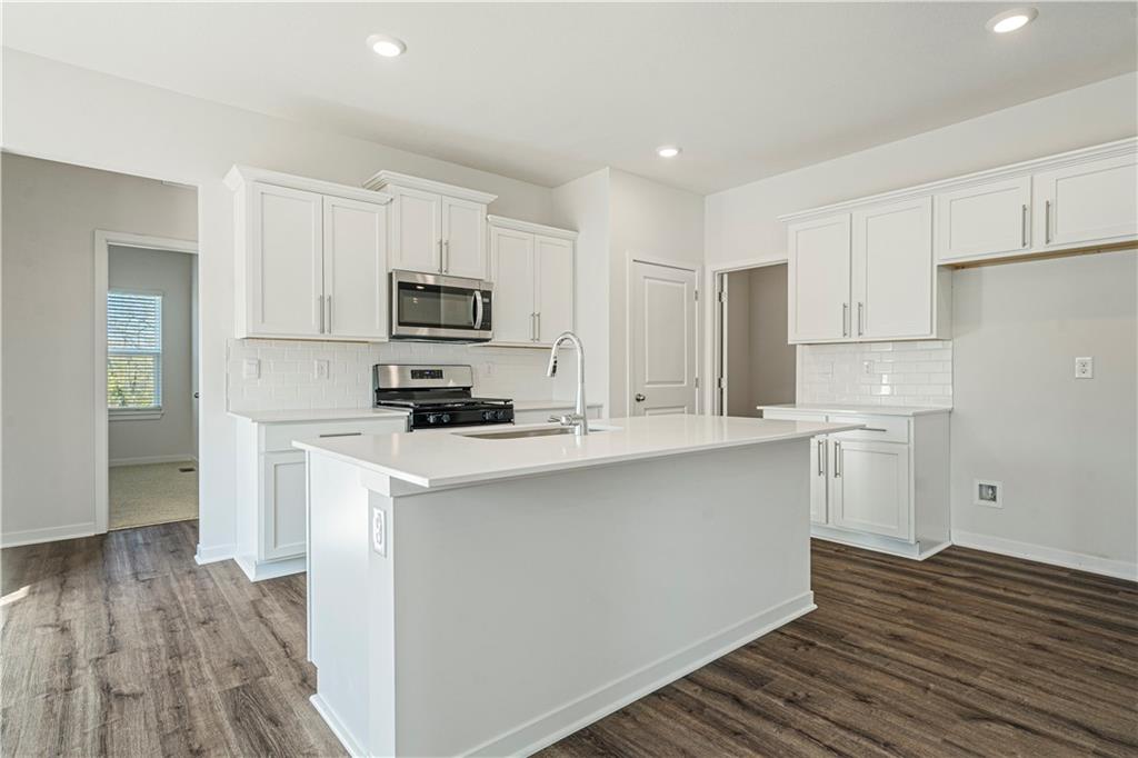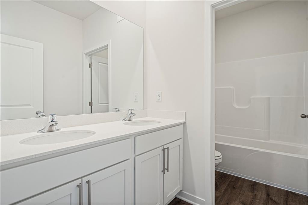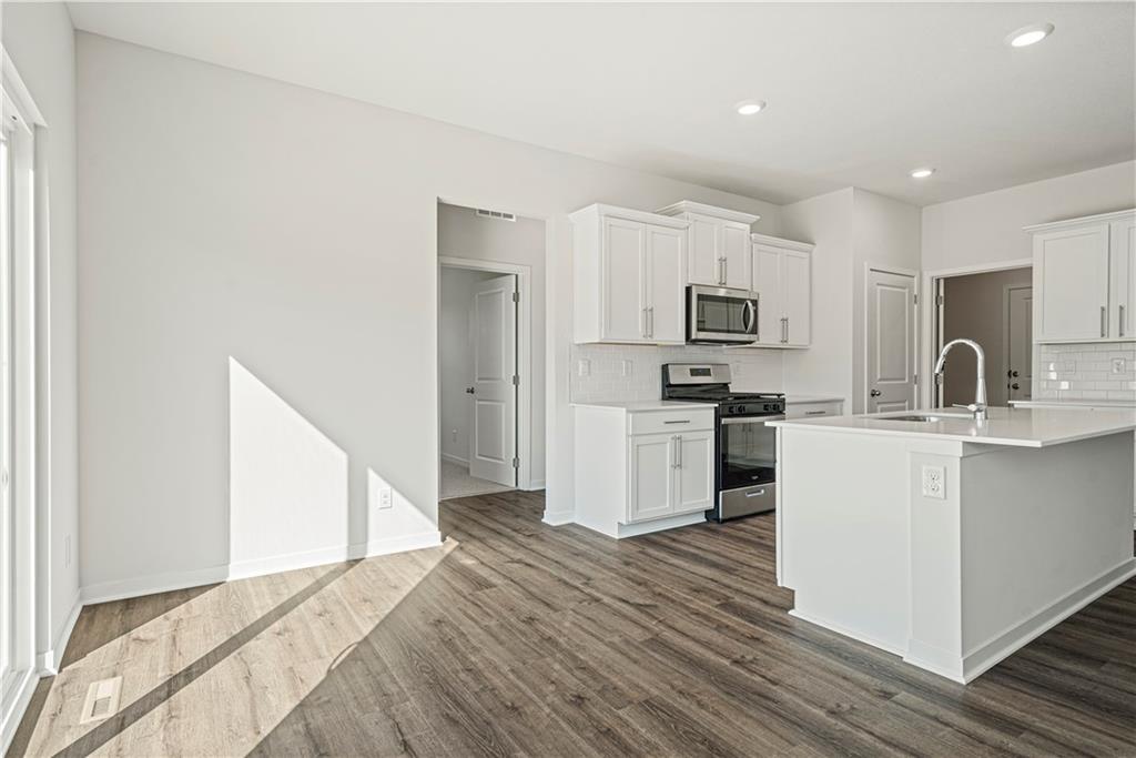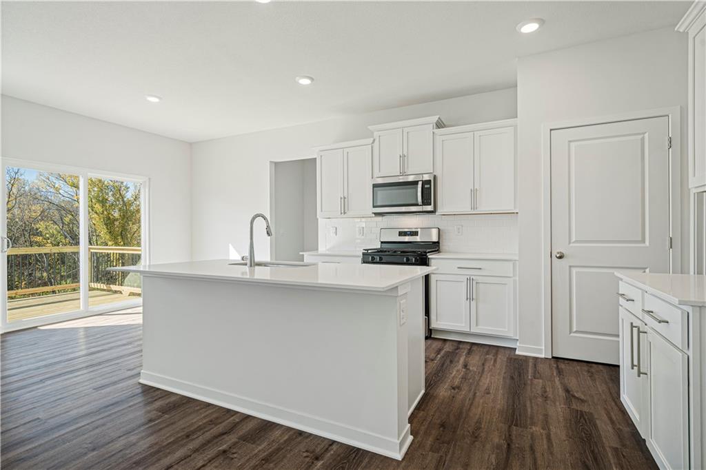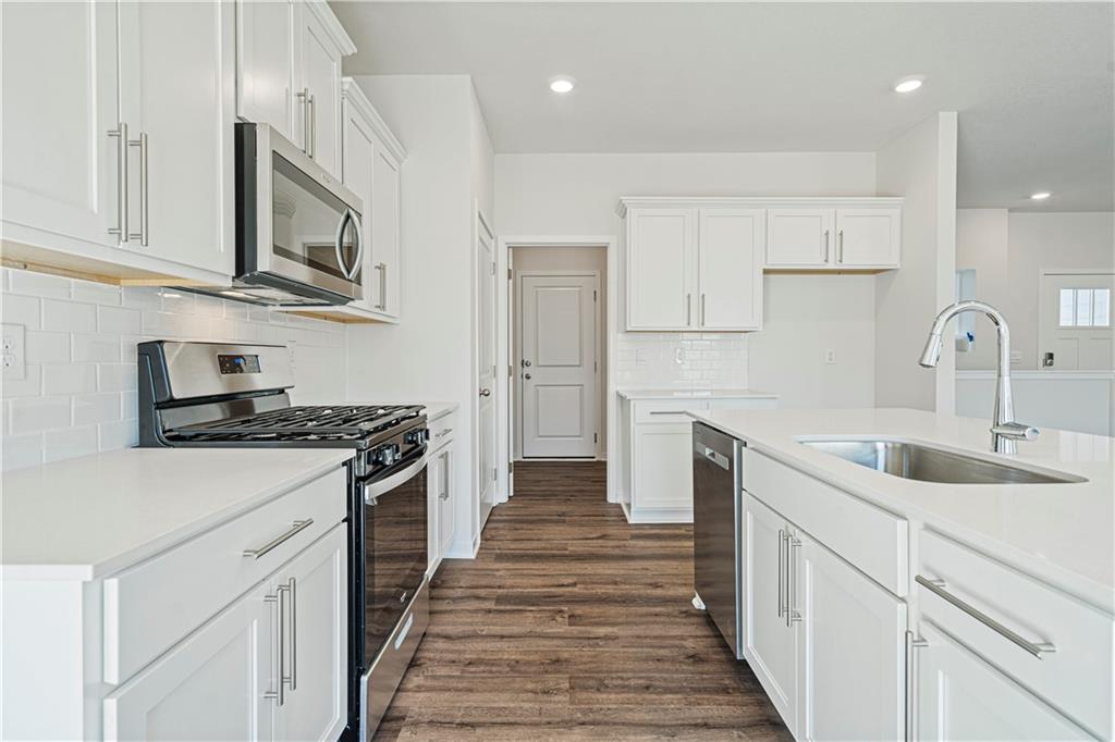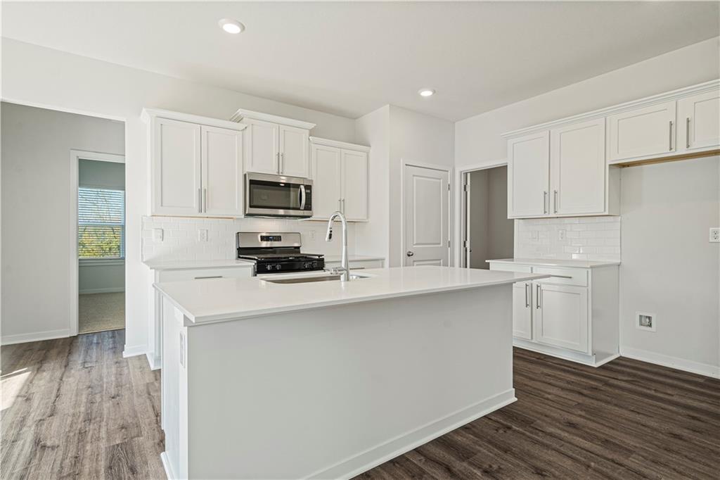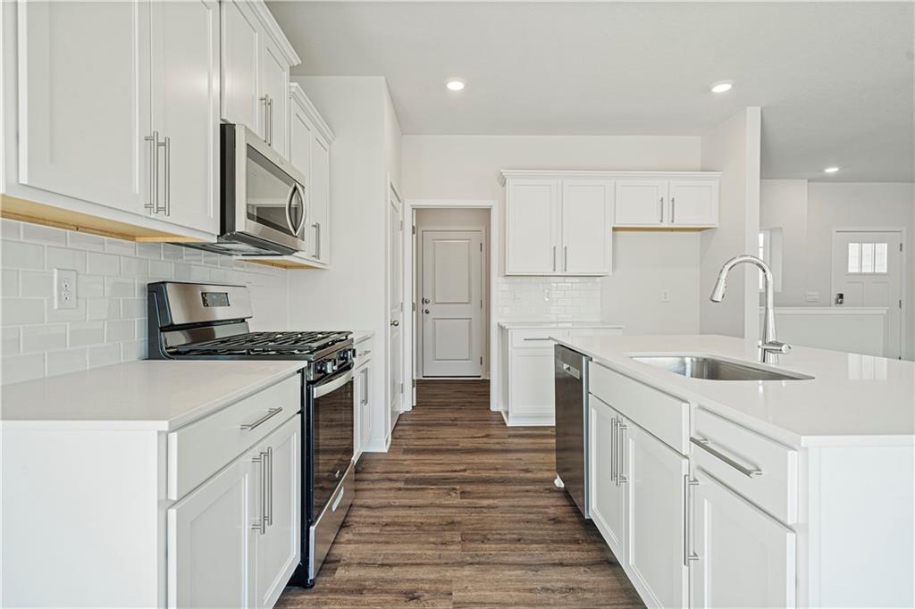 Welcome to Ella’s Crossing, where modern design meets timeless elegance in this exceptional home crafted by D.R. Horton, “America’s Builder.” This residence greets you with a three-rail, two-panel insulated front door that enhances both curb appeal and energy efficiency. Step inside to find a beautifully appointed interior with 9-foot ceilings that exude sophistication. The chef’s kitchen is the heart of the home, featuring 36-inch painted maple cabinets, quartz countertops, and state-of-the-art Whirlpool® stainless steel appliances, all designed to make cooking a pleasure. Retreat to the spa-inspired bathrooms, where quartz-topped vanities, Moen® Chrome Faucets, and luxurious showers await. The primary bath offers a 5-foot shower with a framed glass enclosure, ensuring your daily routines are indulgent experiences. This home is designed for the future with advanced Smart Home technology, including a Honeywell® Pro Z-Wave® Thermostat, Amazon Echo, and a connected home panel, allowing you to control and monitor your home from anywhere. Energy efficiency is prioritized with LED lighting throughout, a high-efficiency gas furnace, and insulated low E vinyl windows, ensuring comfort and savings year-round. Additional features such as luxury vinyl plank flooring, a spacious garage with opener(s), and detailed wiring solutions like dual data/TV lines in the main bedroom and family room, enhance both convenience and style. D.R. Horton’s commitment to quality is evident in every aspect of this home, offering you a place where luxury, technology, and comfort come together seamlessly. Don’t miss your chance to own this extraordinary home in Ella’s Crossing. Schedule your private tour today and experience the D.R. Horton difference!