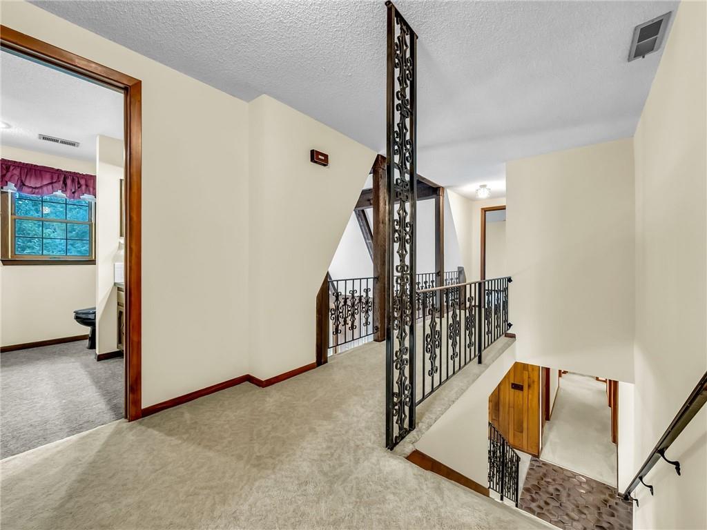 One of the property’s most unique features is the shared ownership of a beautiful pond adjacent to the home. This natural water feature creates a tranquil backdrop visible from multiple rooms, adding a serene element to daily living. The pond area offers a peaceful retreat for morning coffee or evening relaxation.