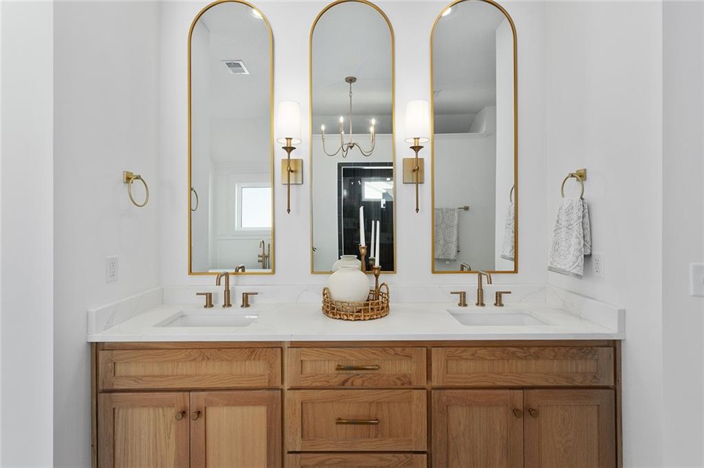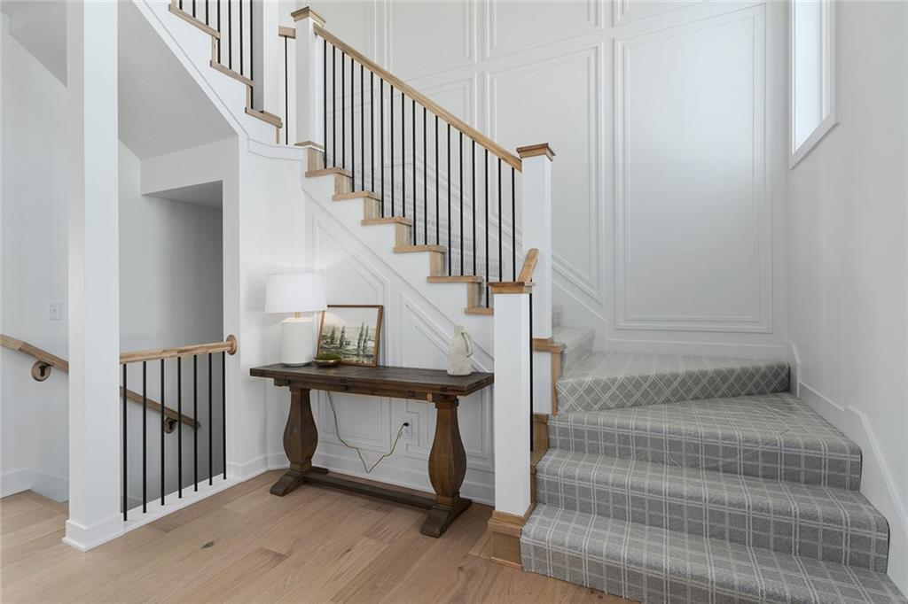 Step inside this stunning 2 Story Home, The Perry II, thoughtfully designed by IHB Homes, with high-end finishes and custom touches throughout. Featuring 5 bedrooms and 4 bathrooms, this home combines timeless elegance with modern functionality. The main floor showcases soaring 10-foot ceilings, abundant natural light, and a seamless flow for both everyday living and entertaining. The interior is anchored by white oak accents and additional hardwood flooring, including in the primary suite, creating warmth and sophistication in every room. Custom details such as panel walls in the entry, a striking custom railing, upgraded quartz surfaces, designer lighting, and tailored tile work elevate the design. Outdoor living is equally impressive, with a composite deck complete with fireplace, a rock wall backdrop, and a larger patio—perfect for gatherings or quiet evenings at home. This home truly blends craftsmanship, comfort, and style for a one-of-a-kind living experience.