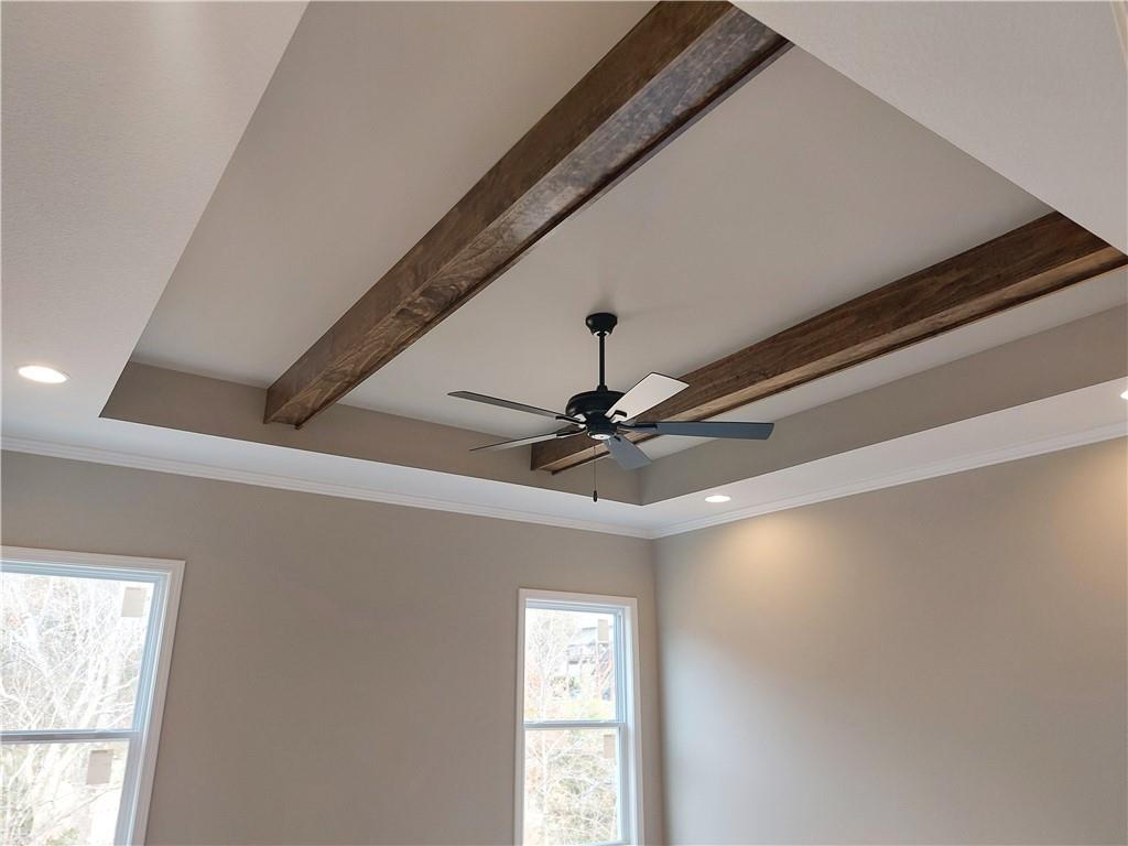 Still time to select flooring, etc. Slated to complete construction in *early December 2025*. This 4-bedroom, 3-bathroom atrium split offers the perfect blend of modern finishes and functional design. The home sits on a huge 160-ft-deep lot that backs to trees, providing both space and privacy. Step inside to find solid hardwood floors throughout the main level, granite and quartz counters in all kitchens and baths, and rounded drywall corners that add a touch of refinement. The owner’s bedroom suite showcases a striking box-vault ceiling with stained beams, while a 4×4 skylight floods the kitchen with natural light.