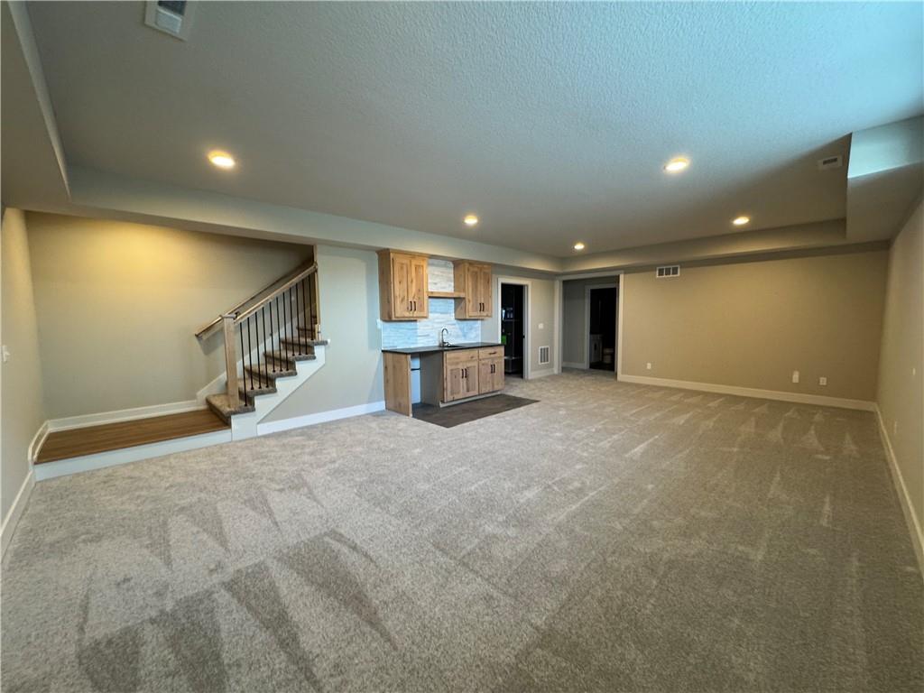 “The Remington” is a 2 story home with a finished basement. The living room features a ceiling fan and stone fireplace. The kitchen has an extra large granite island. The main floor has a guest suite with full bath. Laundry room on both the main floor and 2nd floor. The kitchen features a large island and walk in pantry with a prep station. The primary bedroom is on the second story with a large walk in closet. The primary bathroom features a European wet room, a second closet, and dual vanities. This home is *Complete* and ready to tour! All square footage is approximate and to be verified by the Buyer’s Agent.
