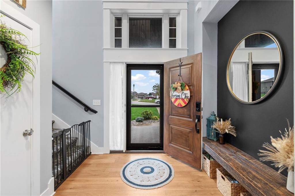 Welcome to this stunning modern home in the coveted community of Seven Bridges. Set on nearly a HALF-ACRE, one of the LARGEST LOTS in the neighborhood, this property seamlessly blends timeless design with everyday comfort. The newly painted exterior showcases dark stucco, warm wood garage doors, and stone accents that create instant curb appeal. Inside, wood floors flow throughout an open-concept layout filled with natural light from oversized windows.