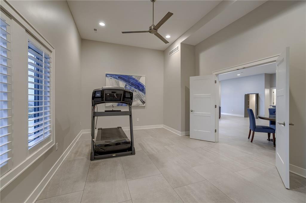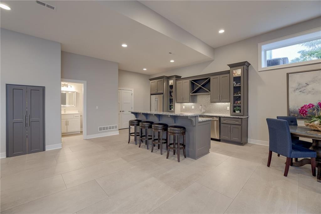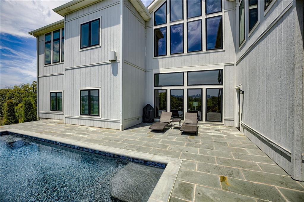 The finished basement is an entertainer’s paradise, complete with a large bar that opens to the infinity pool, a gym space, and a wine cellar. With 5 bedrooms, 3 full baths, and 2 half baths, this home provides ample space for family and guests alike. The soaring vaulted ceilings in the living room, accented by a sleek tiled fireplace and wood beams, add to the grandeur of this remarkable residence.