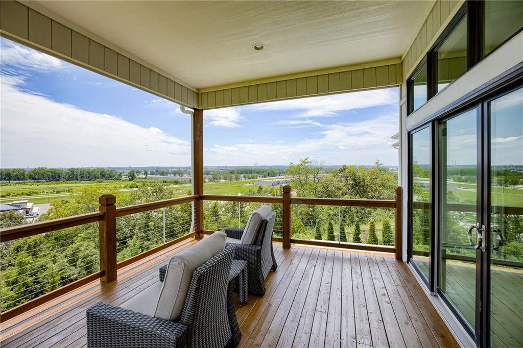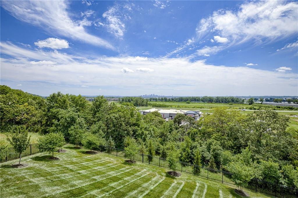 Experience luxury living at its finest in this nearly 5,000-square-foot masterpiece, perched on a cliffside with sweeping views of the Kansas City skyline. This exquisite home boasts an infinity pool seamlessly blending into the horizon, complemented by a spacious stone tile patio and a covered wood deck, perfect for outdoor entertaining.