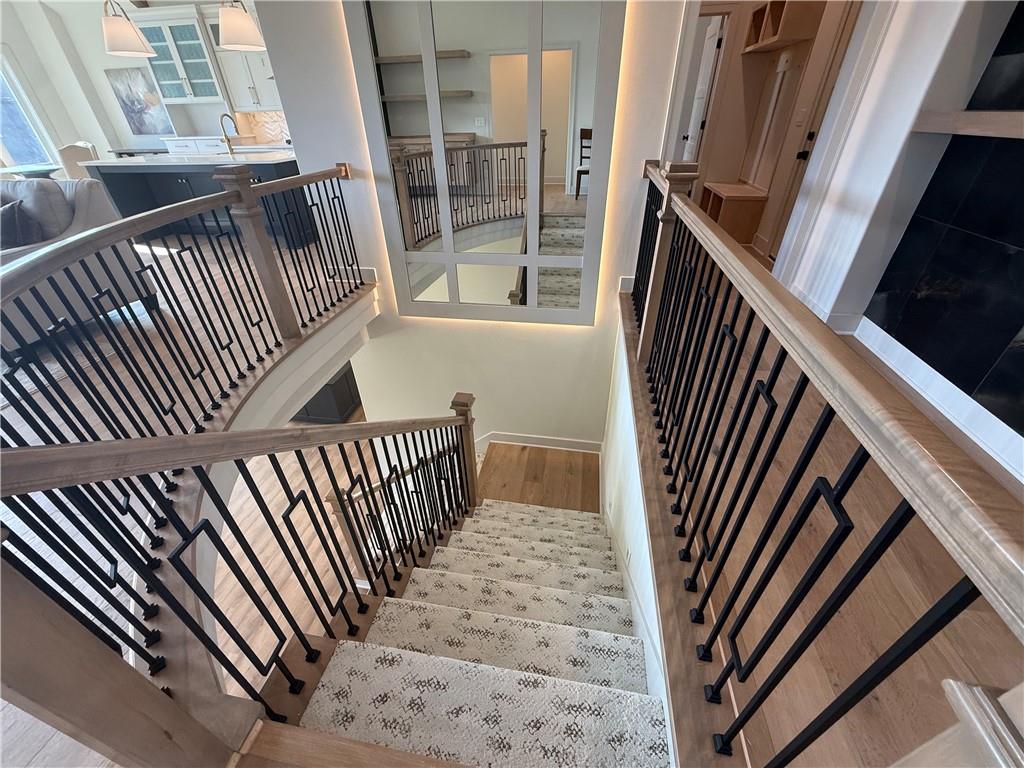 This stunning, newly built Reverse 1.5 Story home blends modern design with exceptional craftsmanship. Featuring 4 bedrooms and 4 baths, it showcases exquisite details, including rich wood floors, soaring open ceilings, and custom cabinetry throughout. Thoughtfully designed built-ins enhance both style and functionality in the living spaces. The private master suite serves as a serene retreat, offering ultimate comfort and luxury. A unique suspended front stoop adds character to the home’s exterior, while the gourmet kitchen is a chef’s delight, complete with a spacious island, walk-in pantry, and high-end appliances. The lower level expands the living space with additional bedrooms and is perfect for entertaining. A standout feature is the wet bar, boasting a striking live-edge countertop. Whether hosting guests or enjoying a quiet evening, this beautifully crafted home is designed to suit your lifestyle. Photos and drone are of a similar plan and finishes/details may vary.