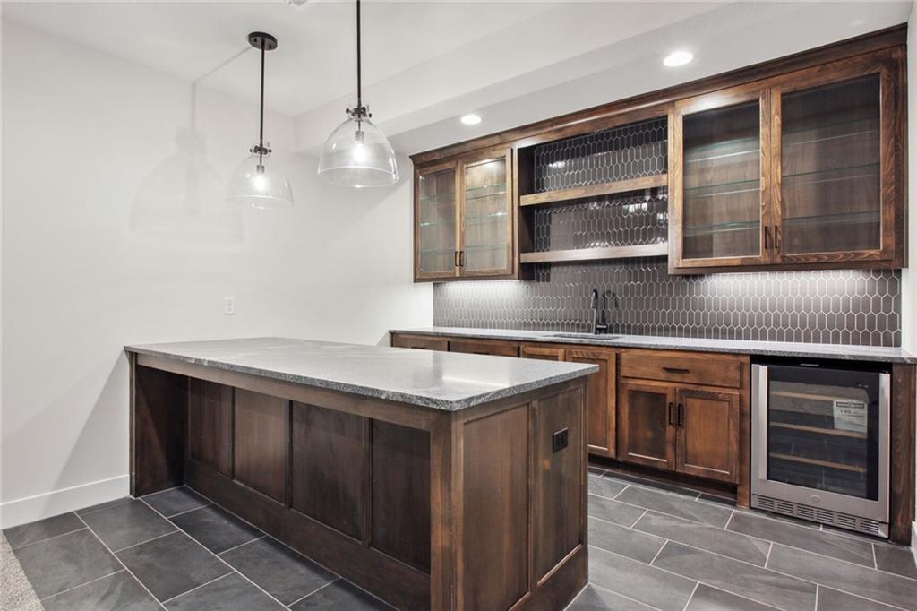 The primary suite offers a spa-like retreat with a large walk-in closet featuring pull-down rods for smart storage. A secondary bedroom and full bath on the main level add versatility for guests or a home office. The finished walkout lower level includes a wet bar, two additional bedrooms, a full bath, and plenty of space to relax or host gatherings.