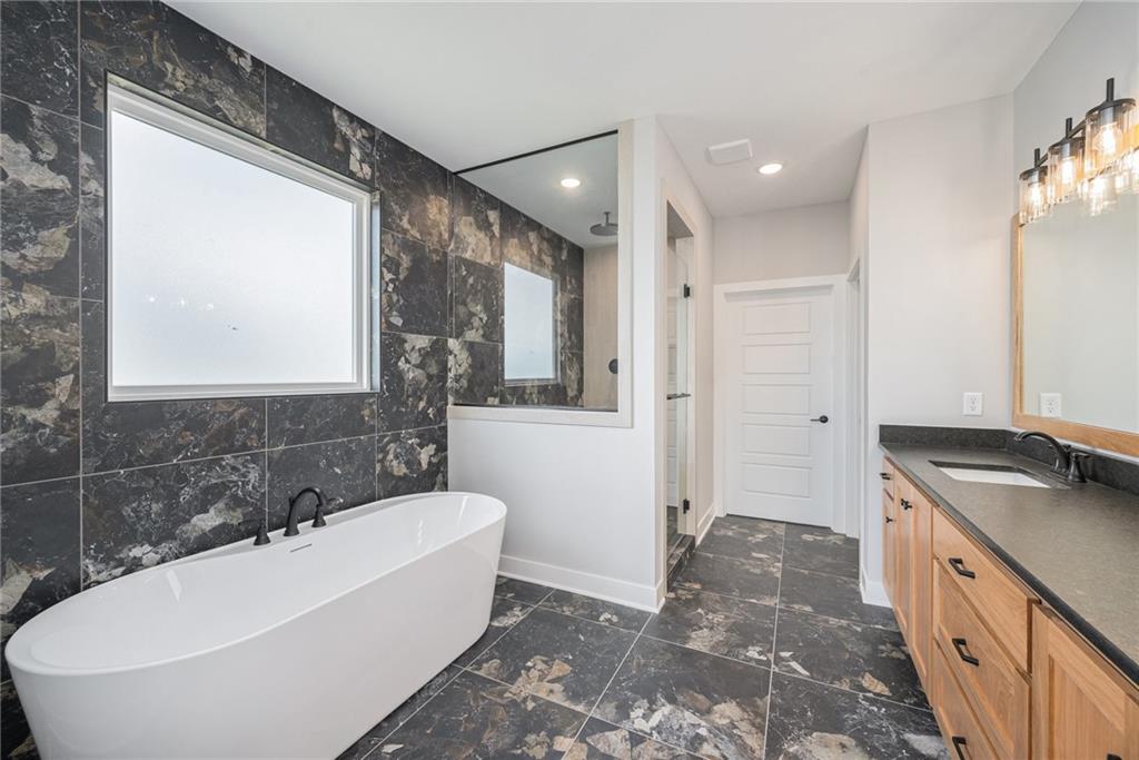 Gorgeous and move-in ready! The Avail is sure to impress, designed in the Contemporary / Clean line Theme incorporating Universal Design Architecture. Great Room has 12 Ft ceiling with box beam details, 12’ tall fireplace that has custom cabinets and floating shelves on each side, Large kitchen that features a 9ft island with quartz countertops. Hold on to your hats…this home just keeps getting better with its large, covered deck just off the great room. Other noteworthy features this home has to offer are: a large main level laundry room, flex suite on main level, dining room or office on main level. Other noteworthy features this home has to offer are: a large main level laundry room, flex suite on the main level, as well as a space just off the entry that can be used as a dining room or office. Master Bathroom includes beautiful free-standing tub next to a double head walk in shower enclosed in clear glass. Finished walk-out basement with 2 additional bedrooms and a wet bar.